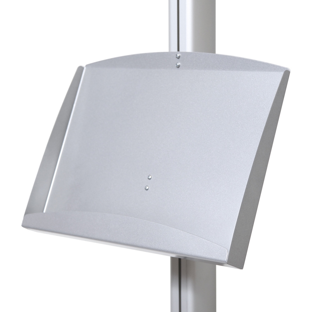 Hylle produsert i stål, sølvlakkert, med plass til 1xA3 (bredformat) eller 2 x A4 (stående).