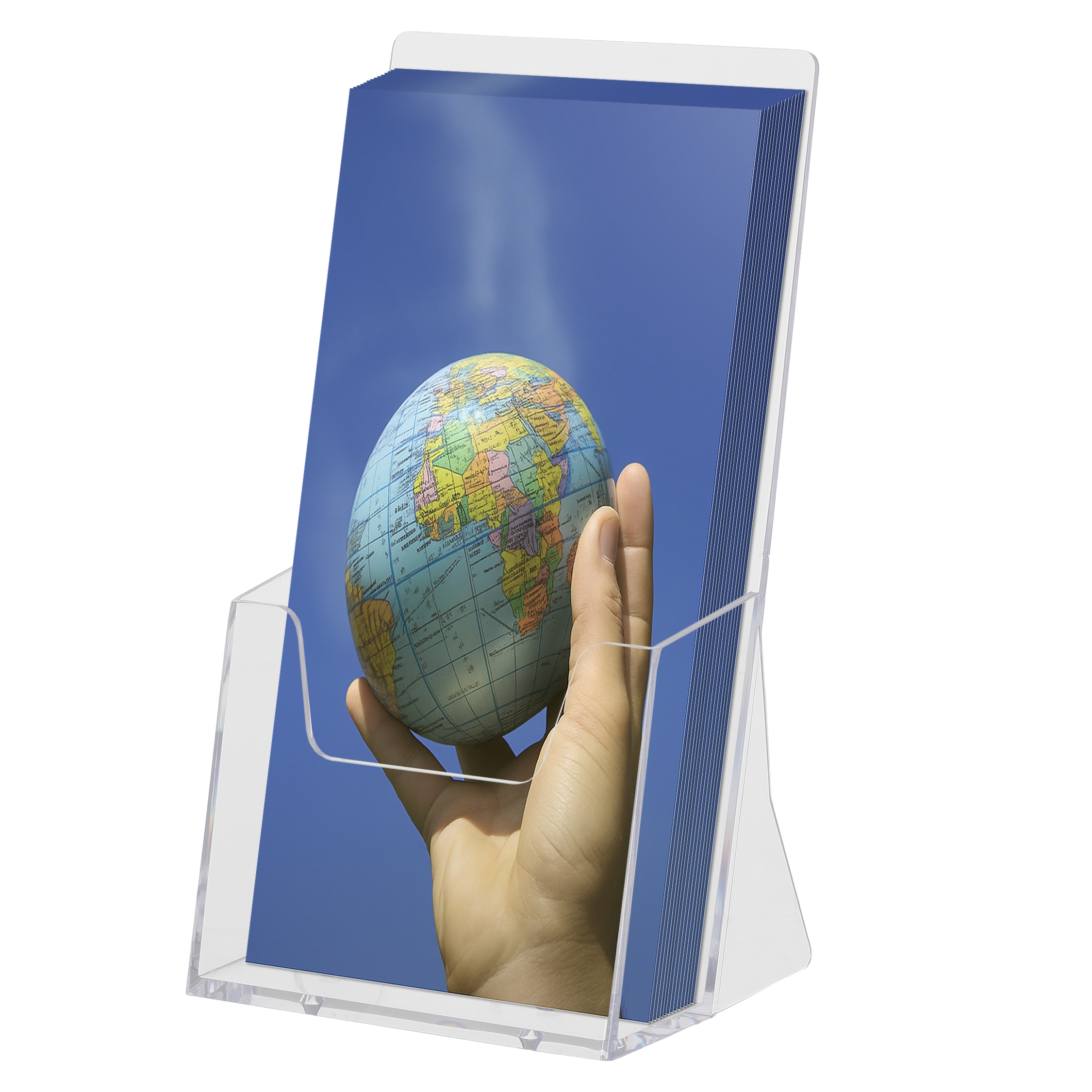 Disse brosjyreholderne er produsert i 3mm sprøytestøpt akryl av beste kvalitet, som gir en krystallklar og profesjonell finish. Egnet for å stå på et bord eller en benk. Disse brosjyreholderne er vinklet bakover, noe som gjør brosjyrene lettere å se fra øyehøyde.