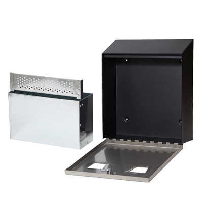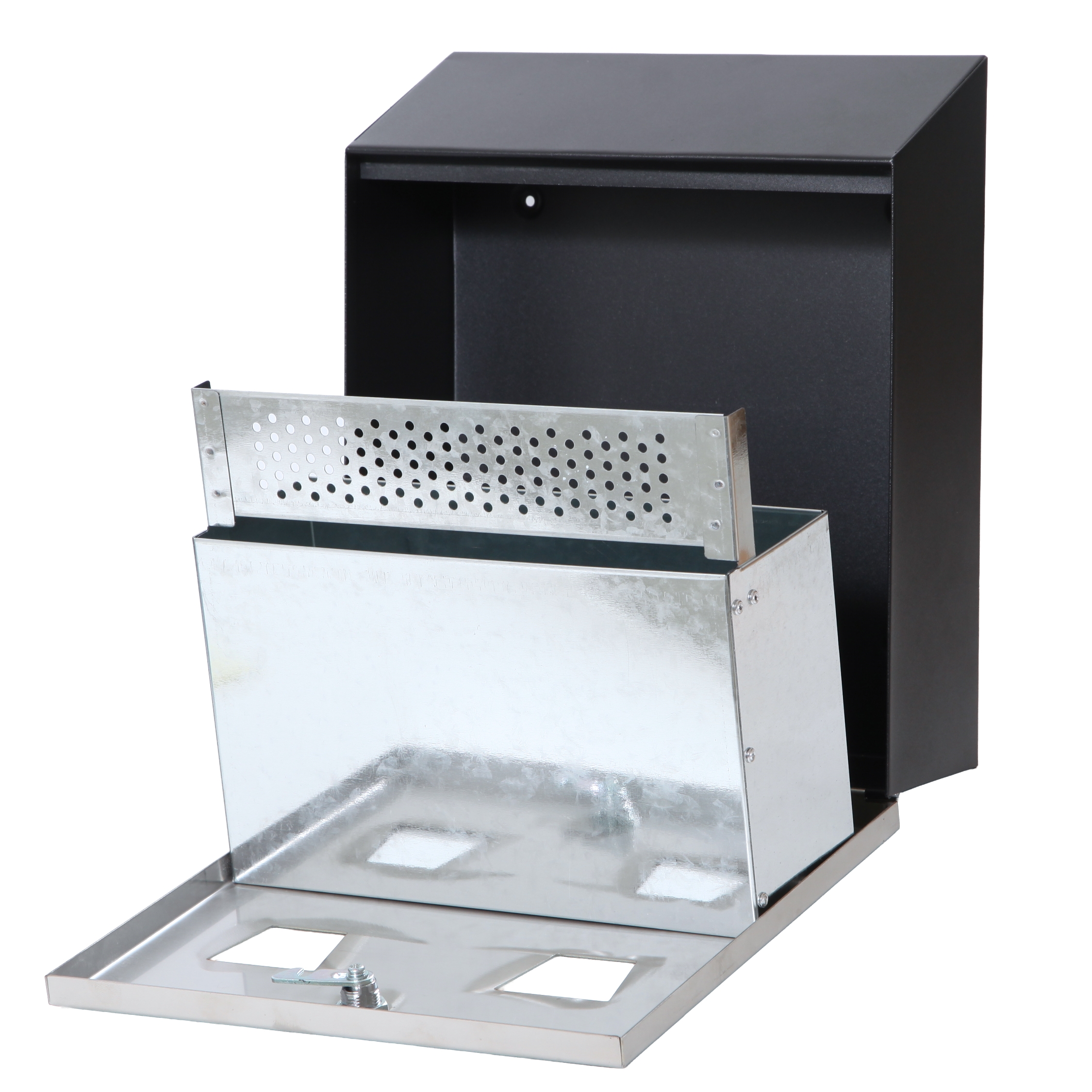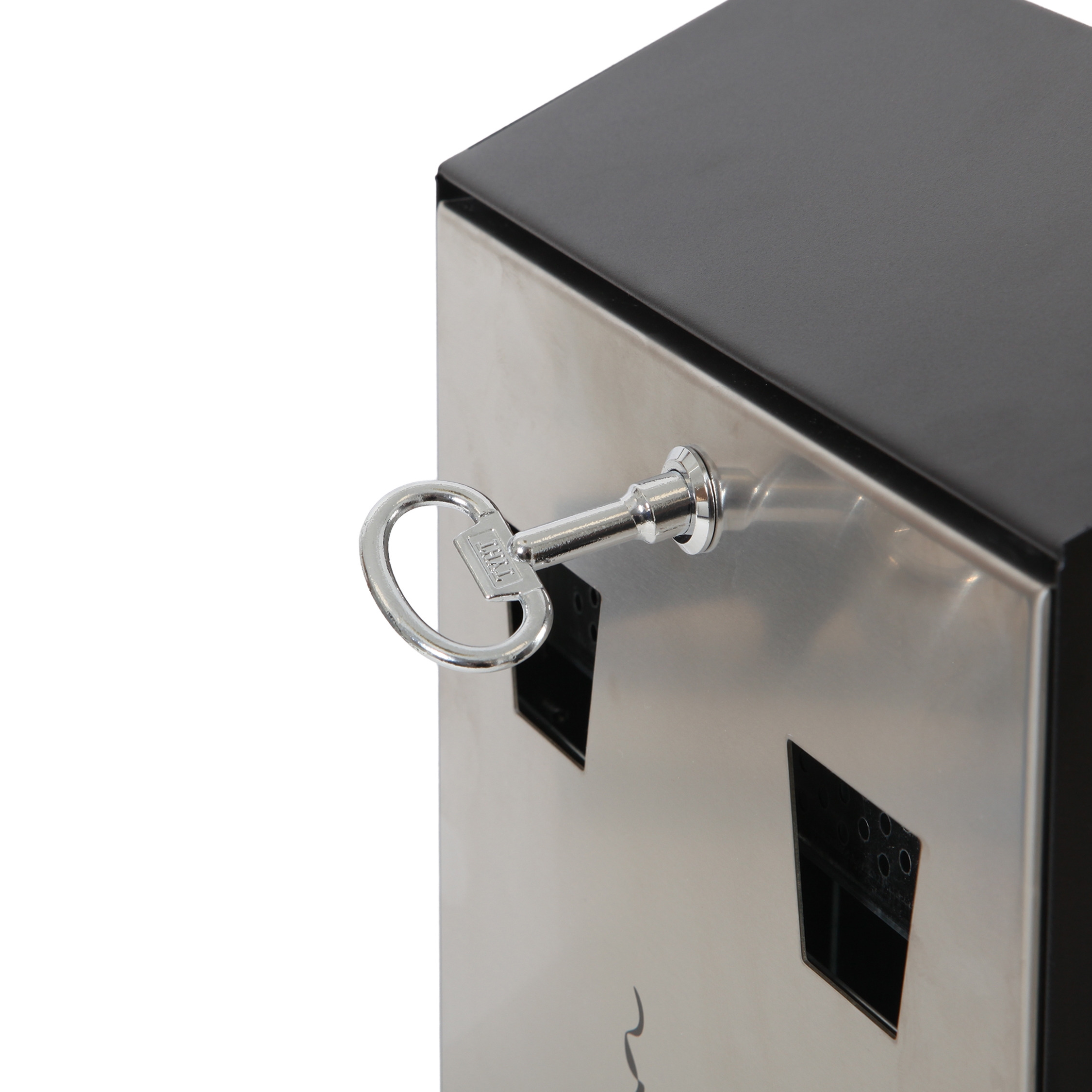 Et solid og værbestandig utendørs askebeger for veggmontering, produsert med en sort stålramme og en rustfri stålfront som gir ekstra god holdbarhet og en mer robust løsning enn mange standardmodeller. Askebegeret har et stilrent uttrykk med to hull med grill samt en låsbar front for sikker og enkel tømming. Den galvaniserte innerbeholderen sikrer hygienisk og driftssikker bruk over tid.