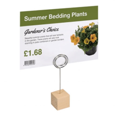 Denne stilige bordkortholder kombinerer naturlig tre med en elegant metallspiral som sikkert holder kort, billetter eller små notater.