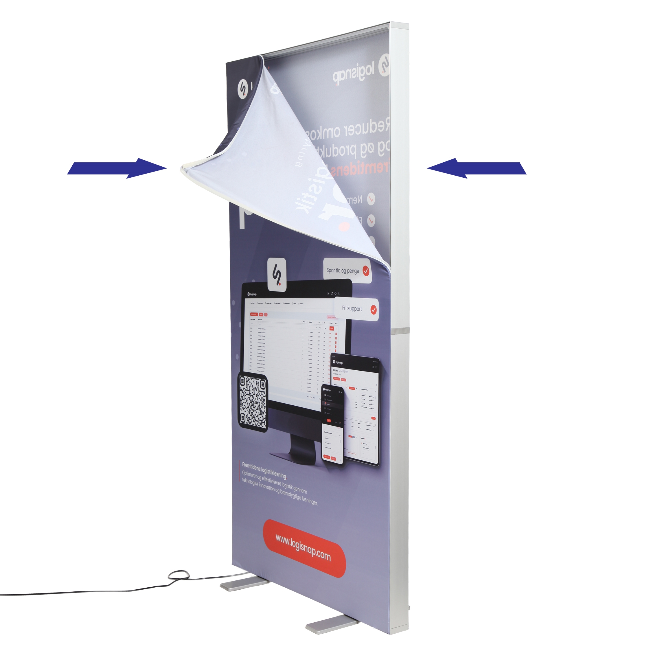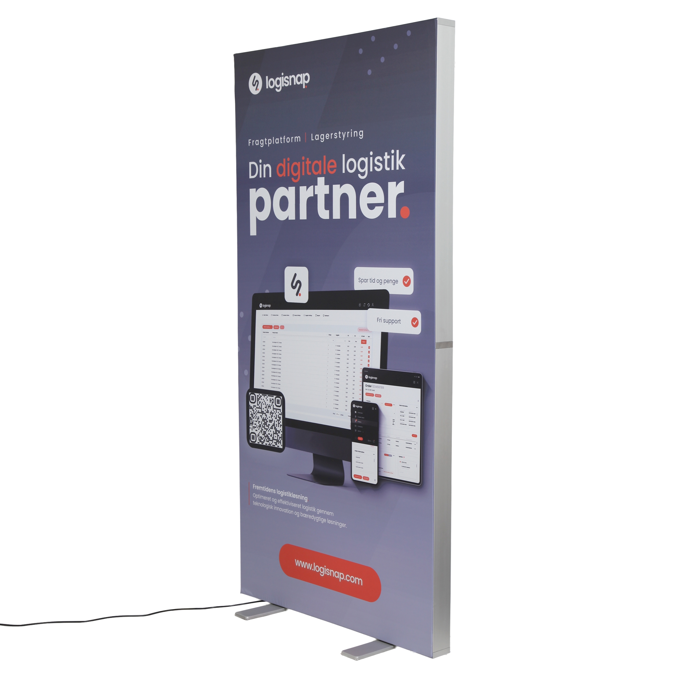 En perfekt lysvegg til dobbelsidige reklamer. Ideel til bruk ved messe, utstillinger, arrangementer eller i offentlige rom.