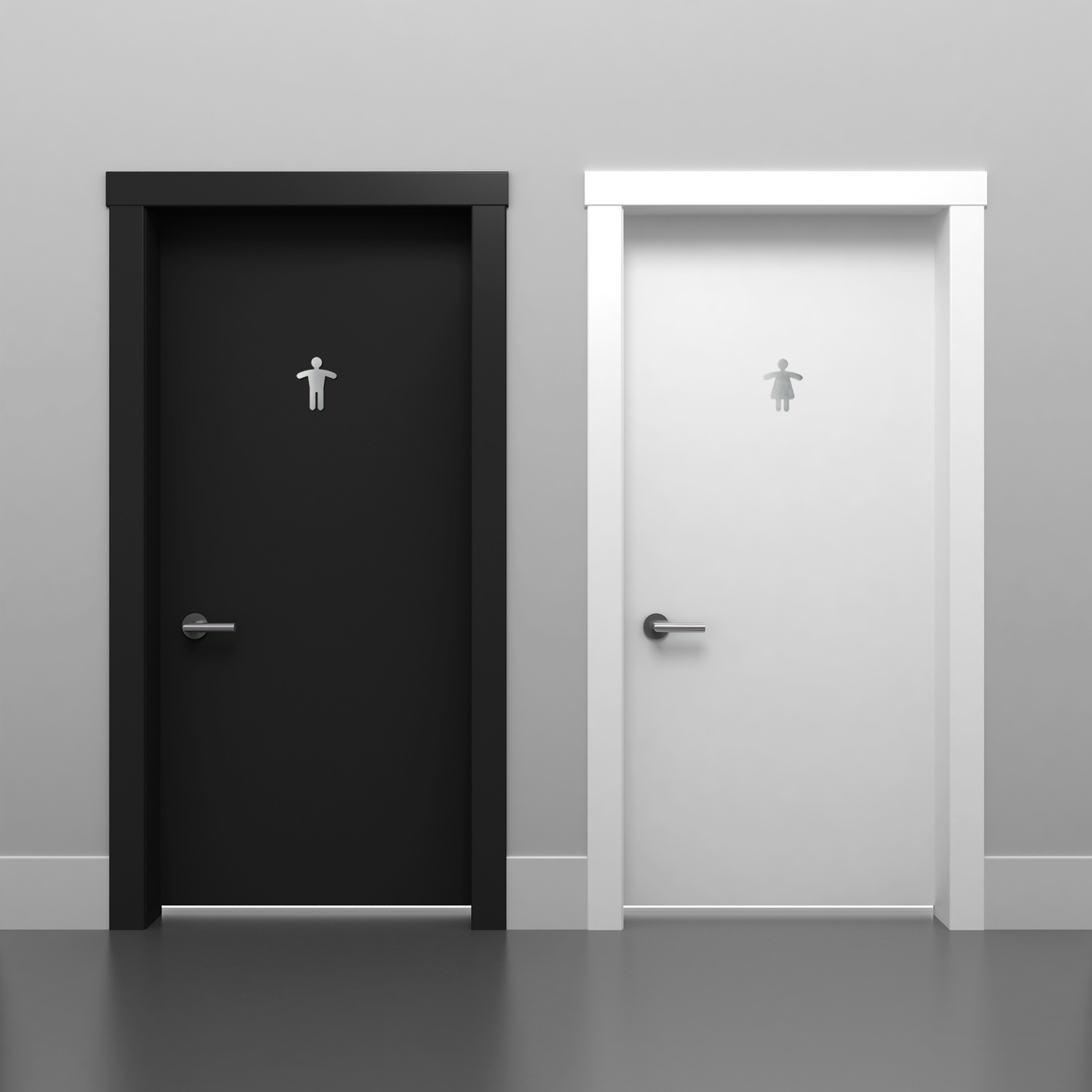 Dametoalett skilt av børstet rustfri stål som er ripefri.