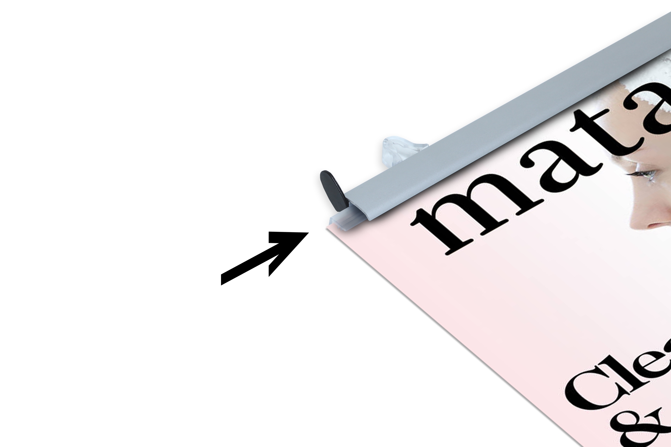 • Ved å dreie endestykkene kan du bare dytte inn plakaten