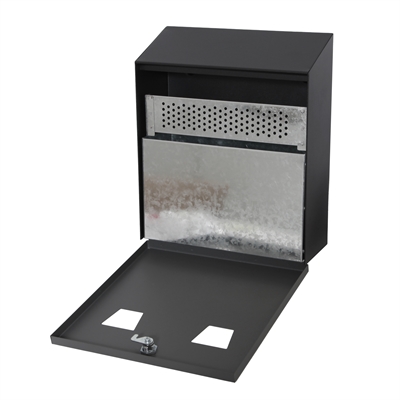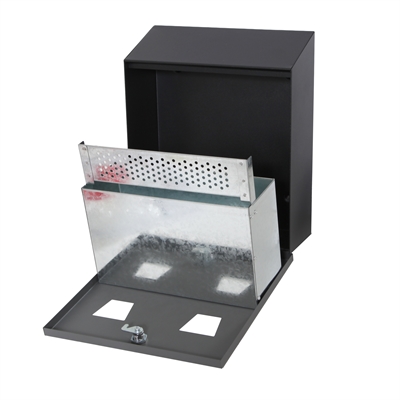 Det er super lett at tømme askebegeret; fronten åpnes med den inkluderte nøkkeln og så tas den innvendige galvaniserte stålsbøtten ut.