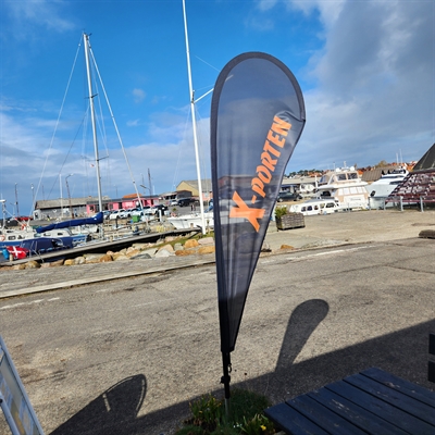 115g B1-godkjent DROP (dråpe) flagg i størrelse 69x181 cm med ditt eget design.