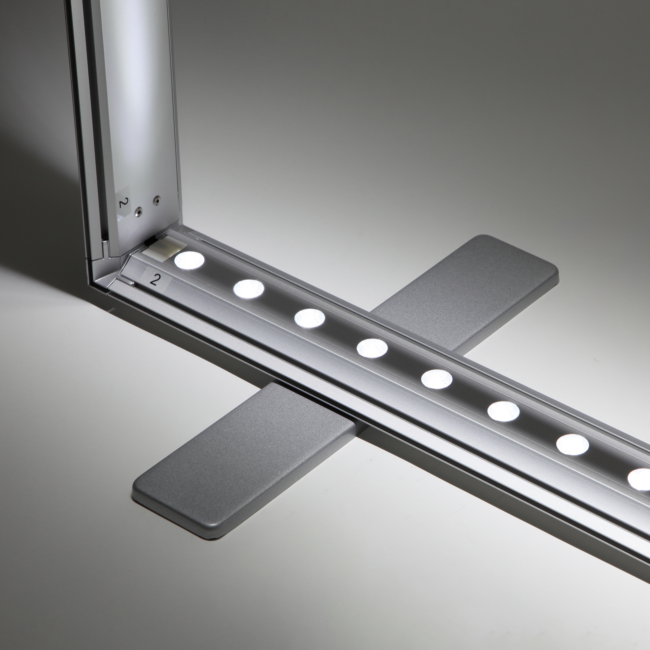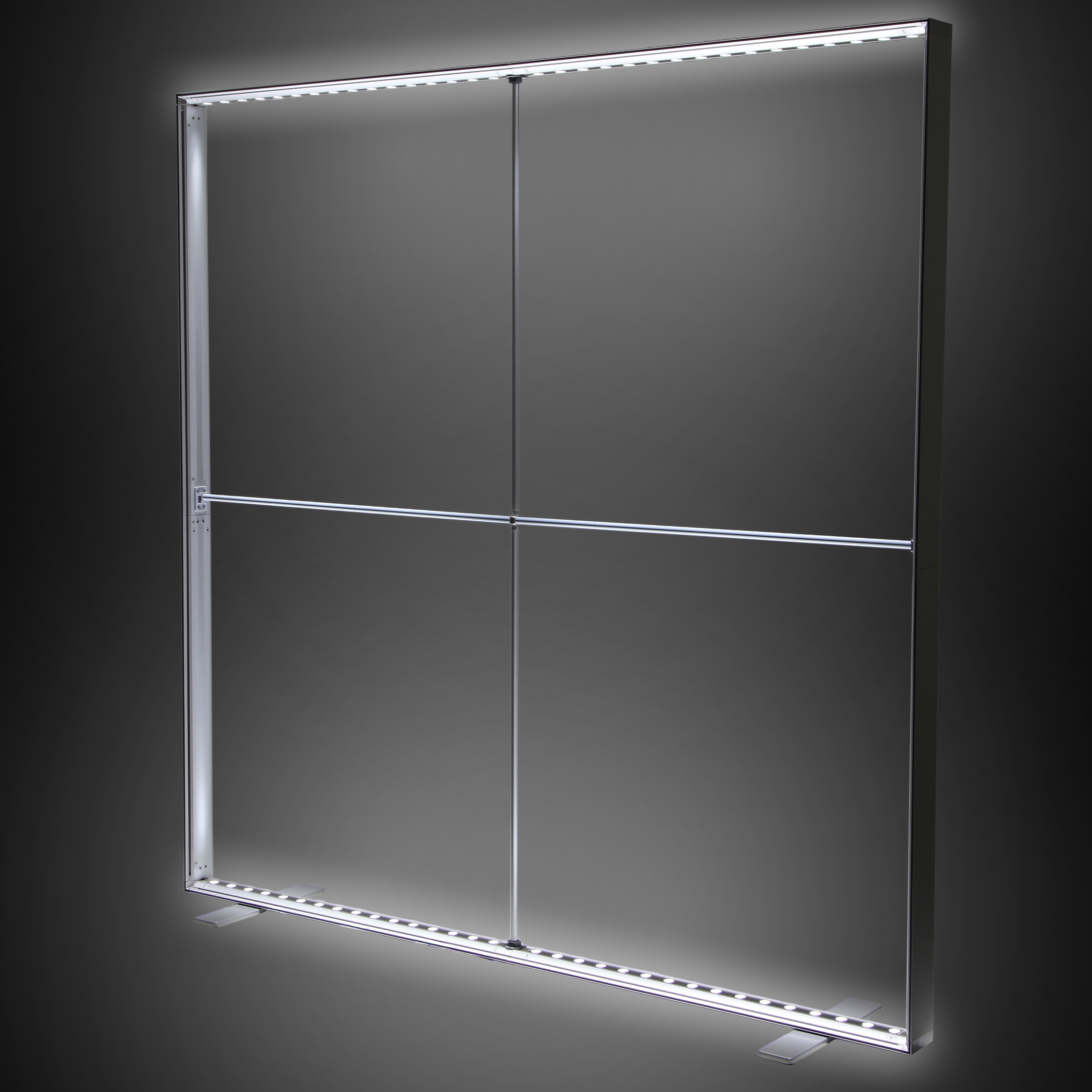 Den integrerte bakgrunnsbelysning øker den visuelle effekten av dine budskap og skaper dermed en betydelig større oppmerksomhet enn tradisjonelle messevegger og bakvegger.