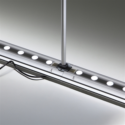 • Integrert rille på sidene for tilslutning til de fleste utstillingsprofiler.