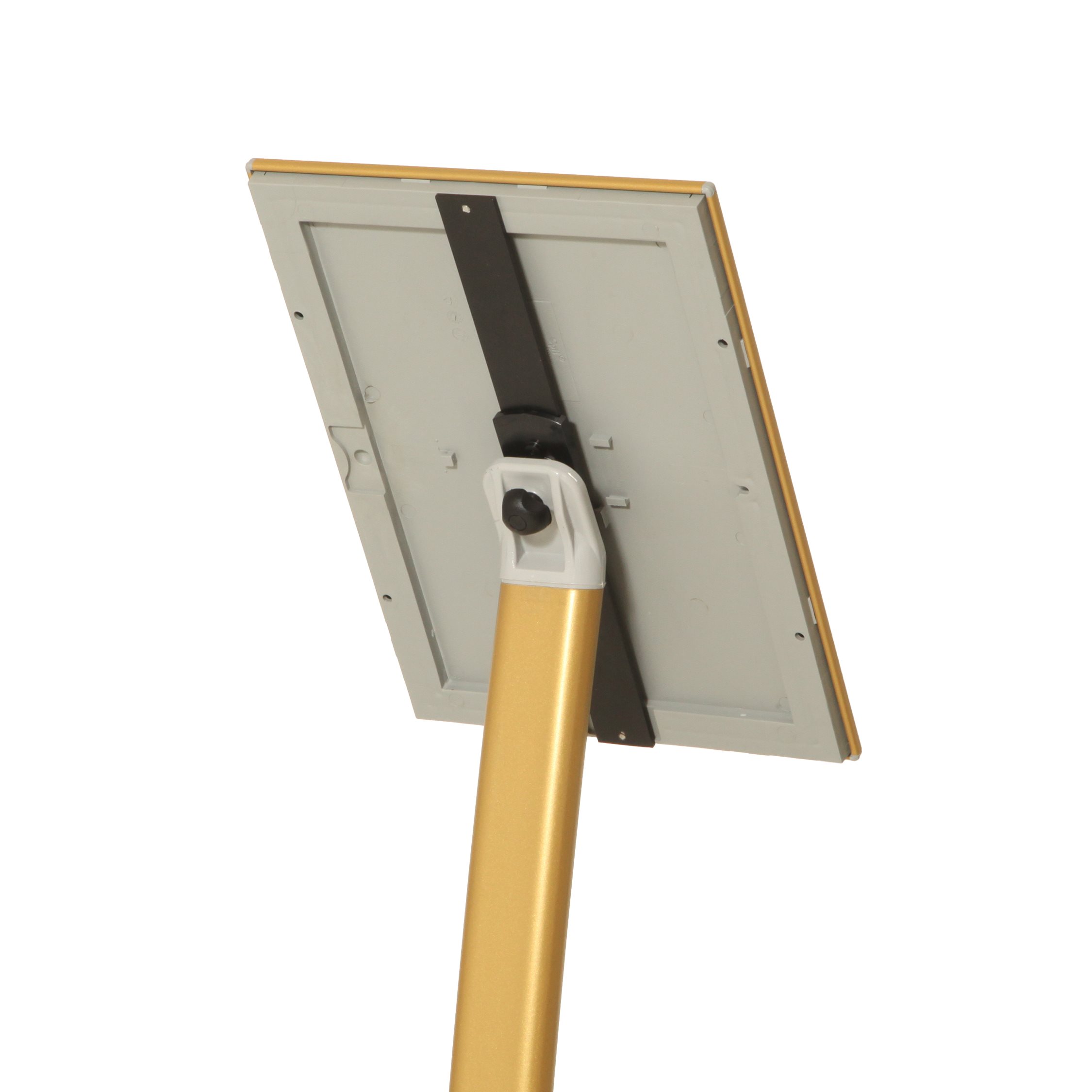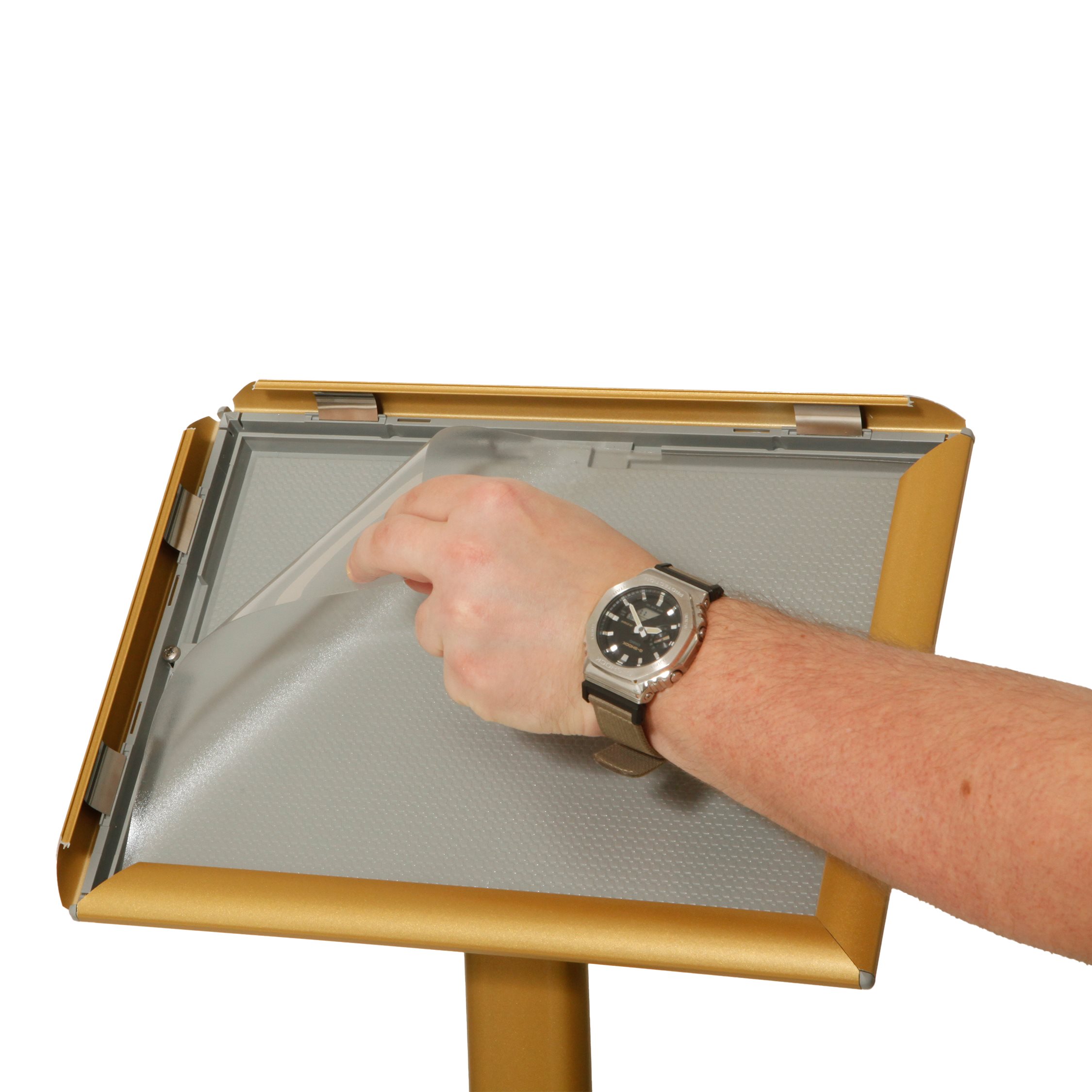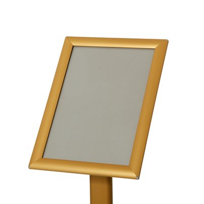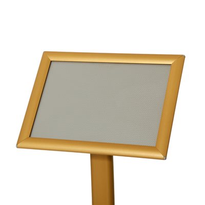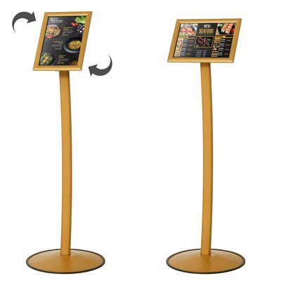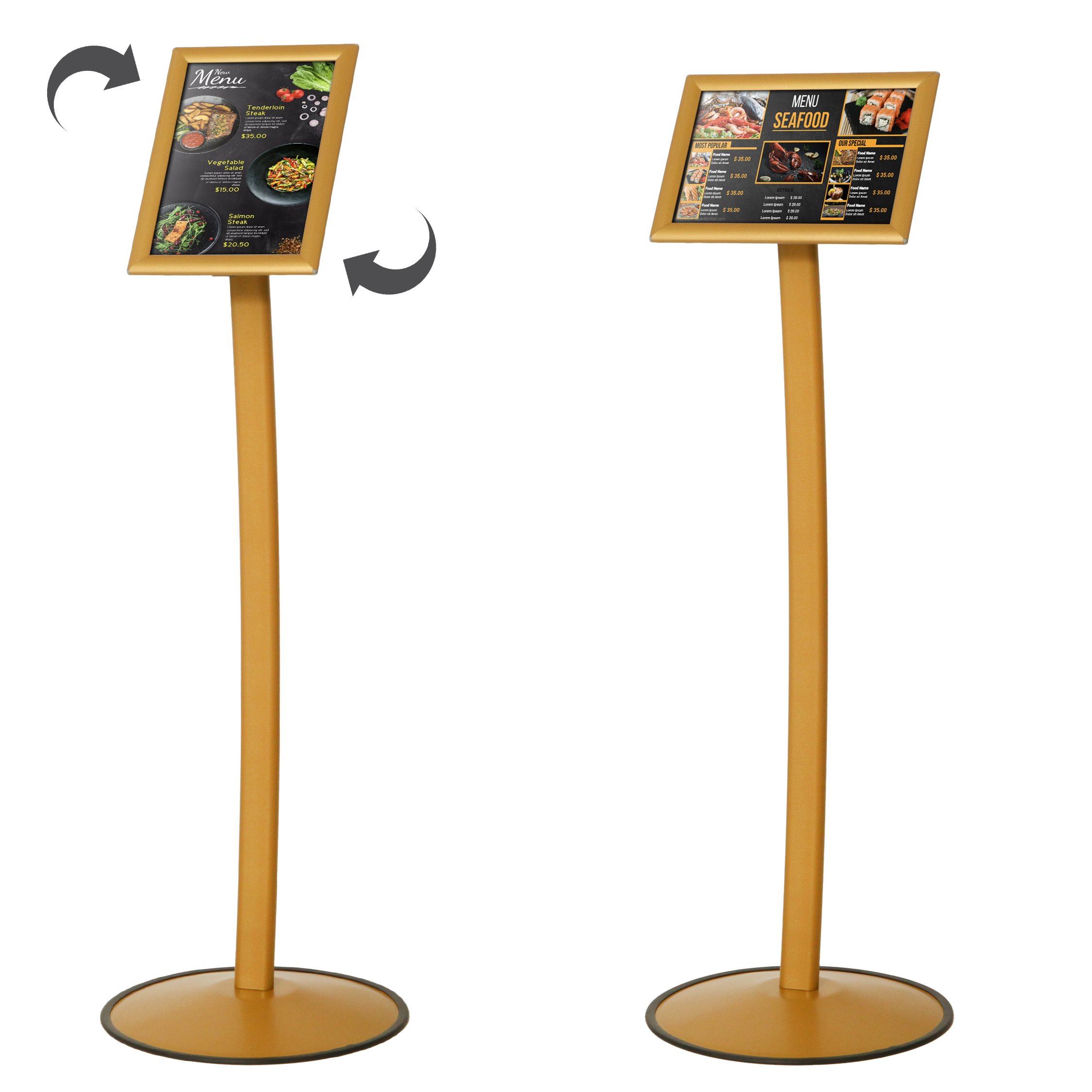 Den gylne finishen på MenuPro infostativet er nøye utvalgt for å harmonere med ethvert interiør. Enten det brukes som et stilfullt menystativ i restauranten din eller som en veiviser ved inngangen til virksomheten din, tilfører det en følelse av luksus og raffinement.