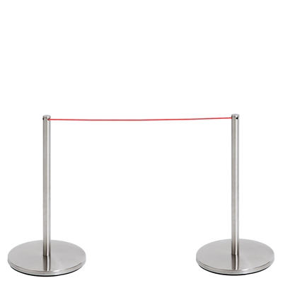 Stolpens slanke form i børstet rustfritt stål kombinert med den tynne elastiske snoren gir en elegant og nesten usynlig avgrensning. Snoren finnes i rød og svart i lengder på 5 eller 25 meter og monteres ved å skru av toppen, føre snoren gjennom åpningen og feste den igjen. Elasticiteten sørger for at avsperringen alltid står stramt, også på trapper og skrå flater.