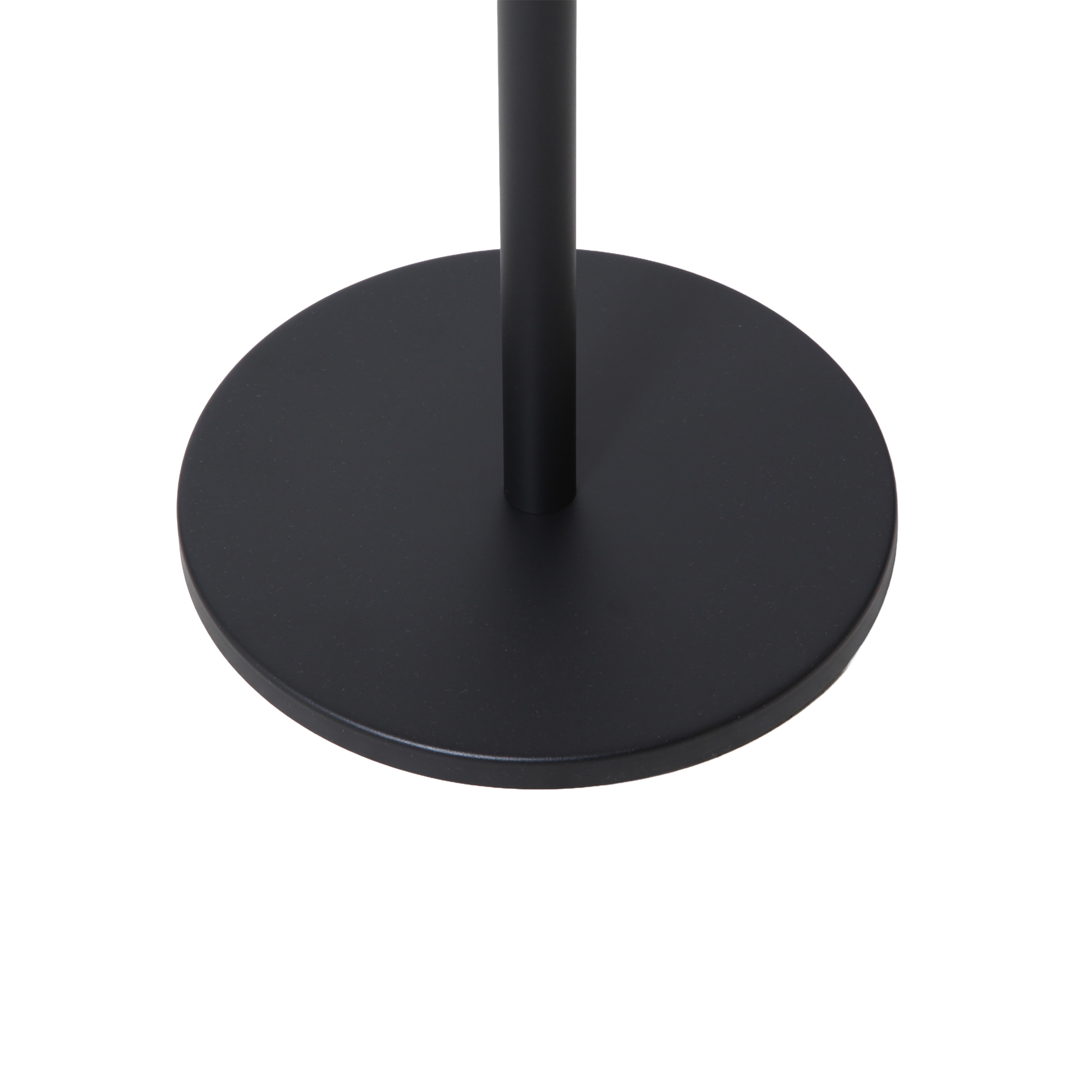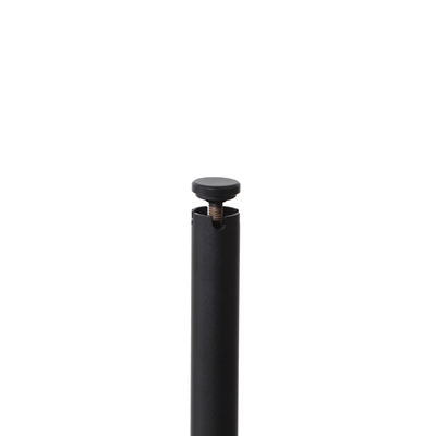 Stolpen er produsert i strukturert pulverlakkert stål med en elegant matt finish. Selve stolpen har en diameter på kun 25 mm, noe som gir et lett og diskré uttrykk, samtidig som den er svært robust. Den runde foten har en diameter på 25 cm og veier hele 6,5 kg, noe som gjør avsperringsstolpen svært stabil og vanskelig å velte – selv i områder med mye trafikk.