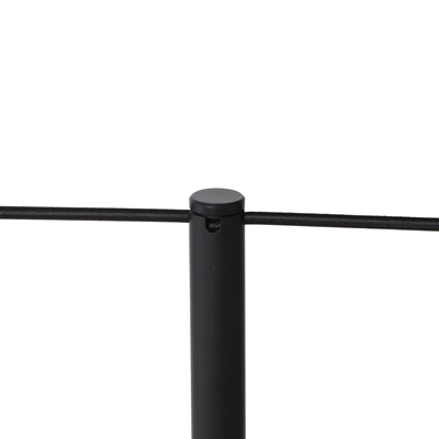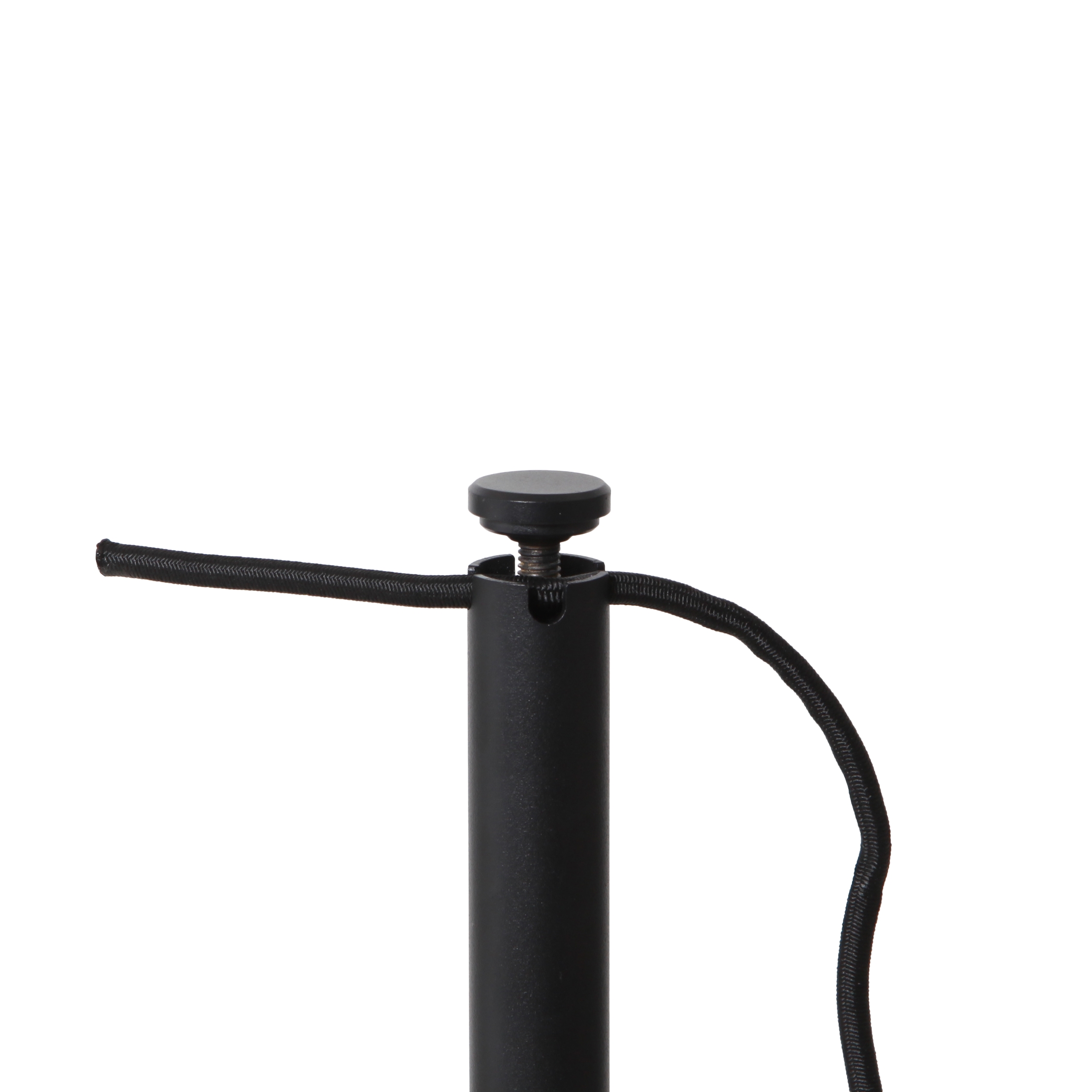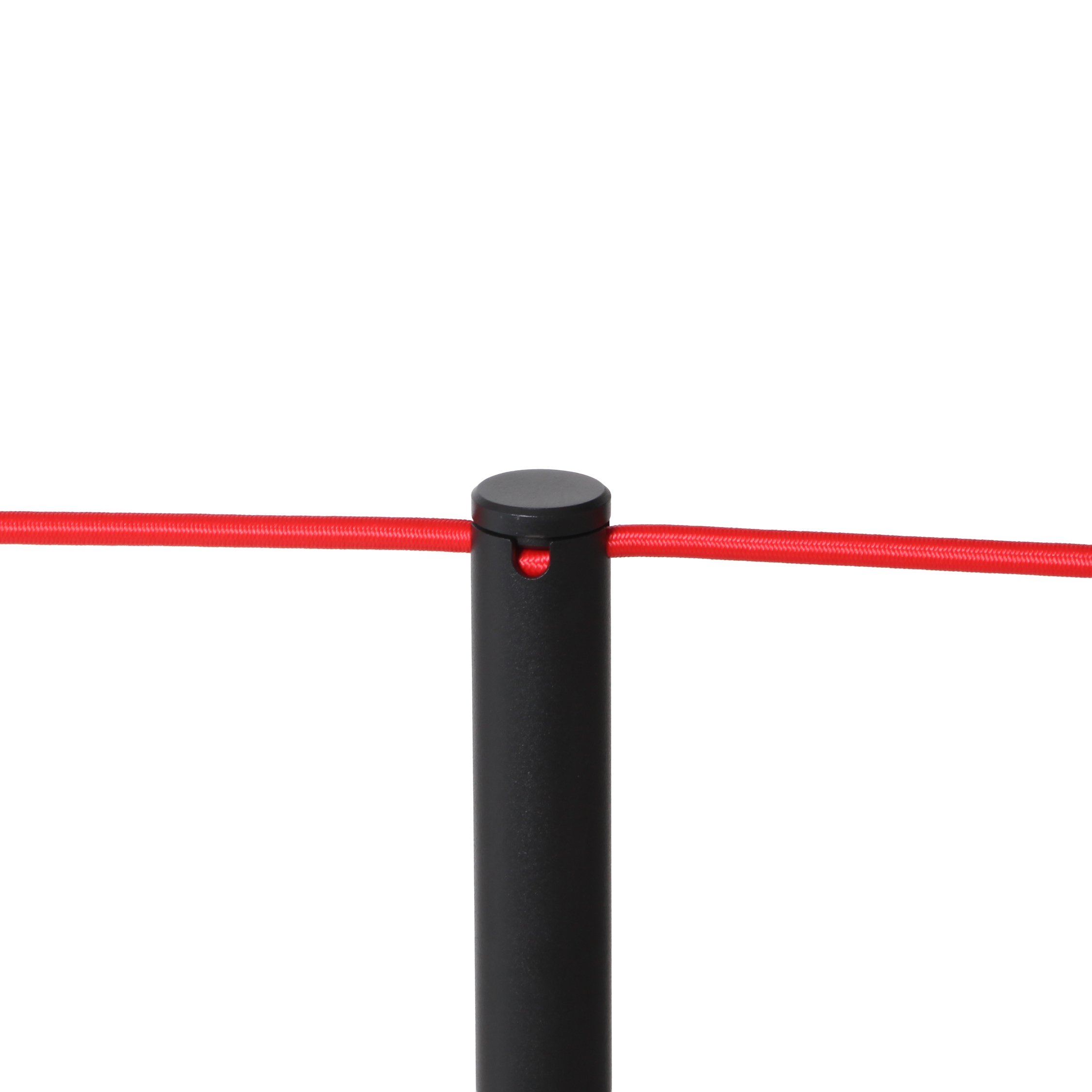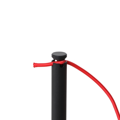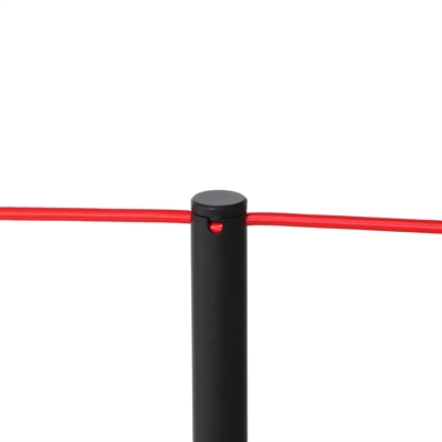 Det elastiske tauet monteres enkelt ved å skru av toppen på stolpen, plassere tauet inni og deretter skru toppen på igjen. Toppen av stolpen er utformet med 4 spor, som gir stor fleksibilitet i oppsettet: