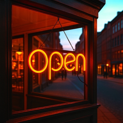 "OPEN" LED neonskilt - Oransje