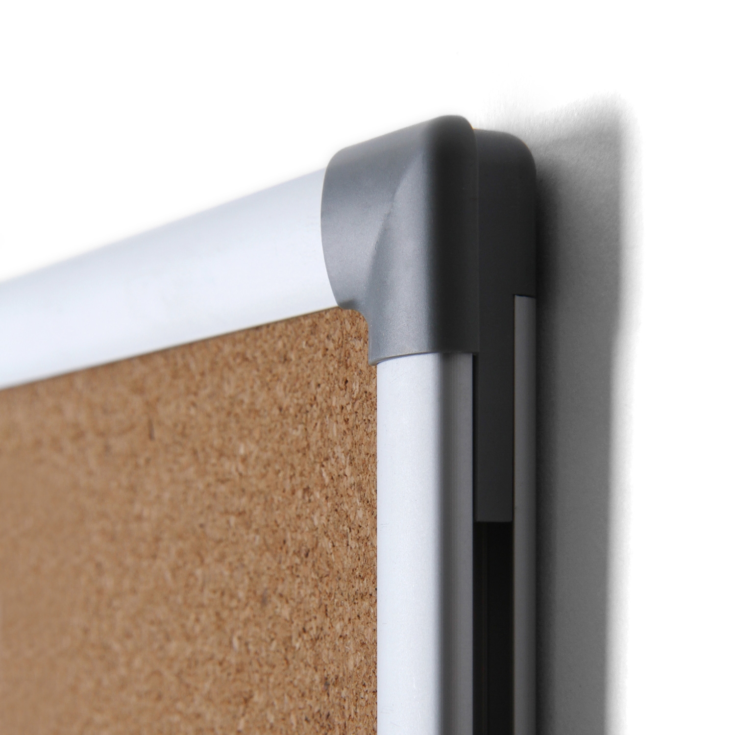 Denne klassiske oppslagstavlen kan brukes til å feste små lapper, bilder og mye mer. Våre oppslagstavler i kork er utstyrt med en stilig profil rundt, laget av sølv-anodisert aluminium.