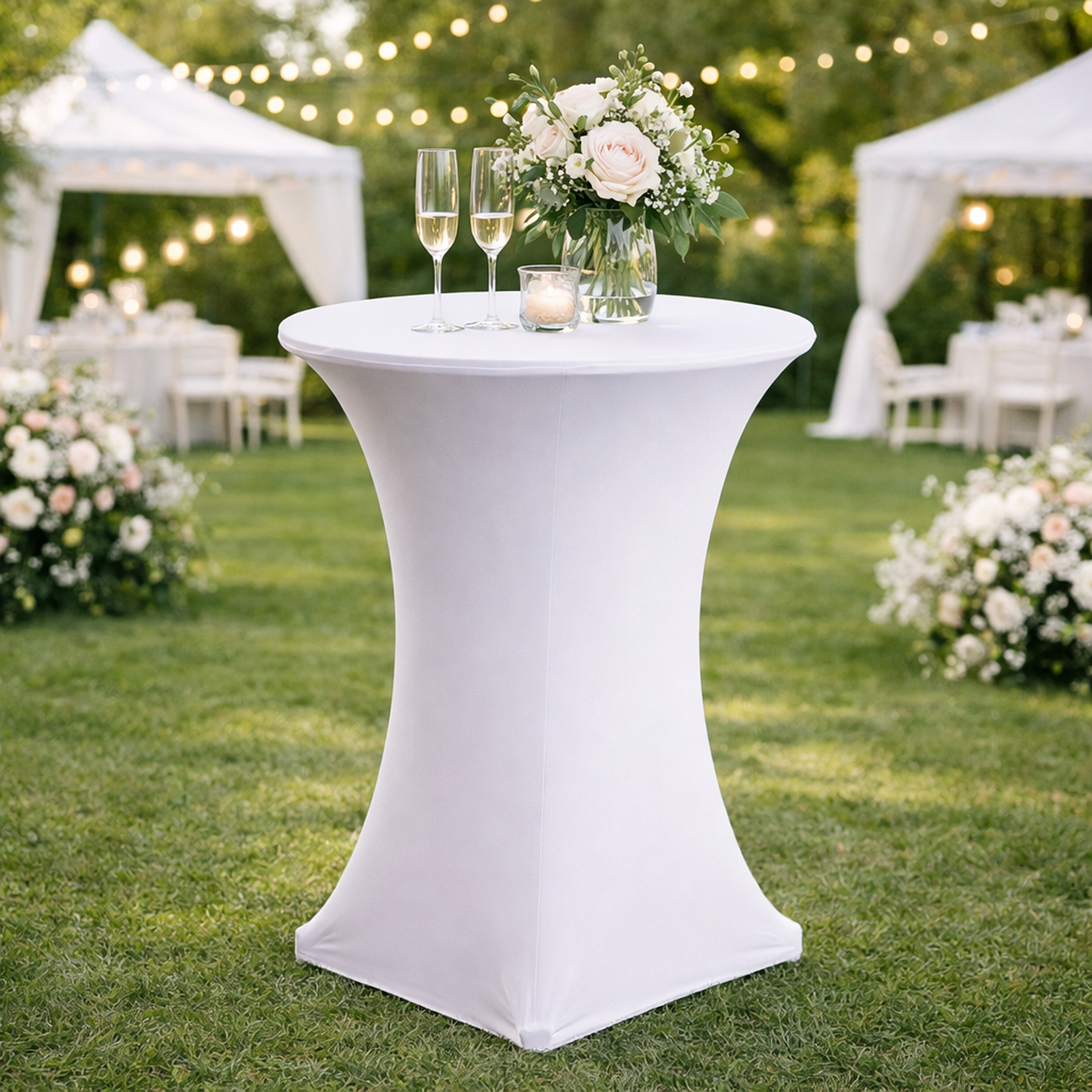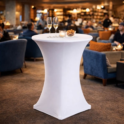 Et praktisk og stilrent trekk som beskytter og forskjønner ståbord ved alle typer arrangementer.