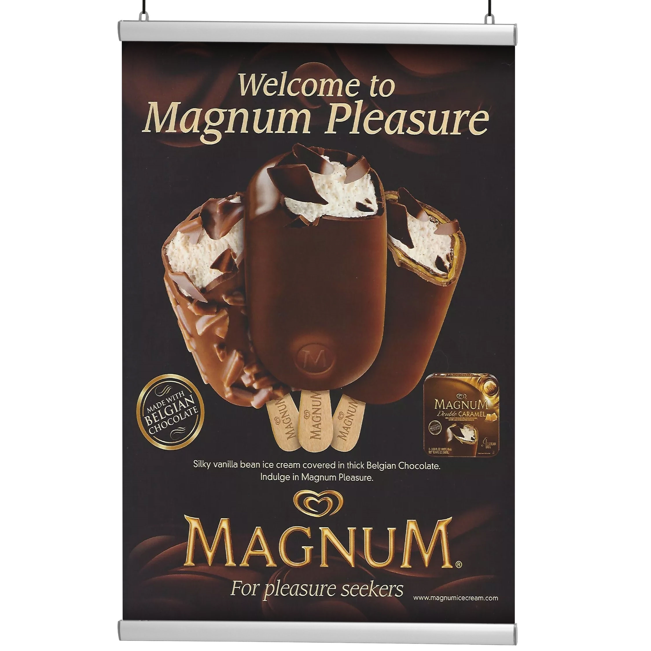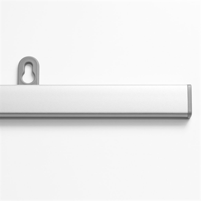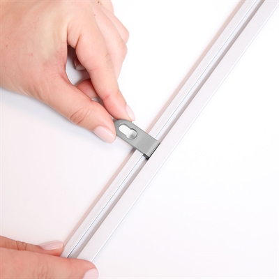 Eksklusive plakatlister i eloksert aluminium i sølv med et stilrent design. Disse alu plakatlister leveres som komplett sett og kan monteres på både vegg og i tak. Klemme-profilen gjør dem ideelle til både enkeltsidig og tosidig bruk, og de fungerer utmerket som plakatoppheng.