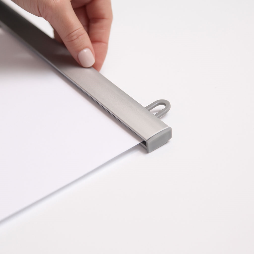 Disse plakatlistene i sølv er en elegant og praktisk løsning for oppheng av plakater.