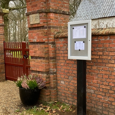 Vårt plakatskap har en flott 45 mm profil og frontruten er laget av slagfast polykarbonat.