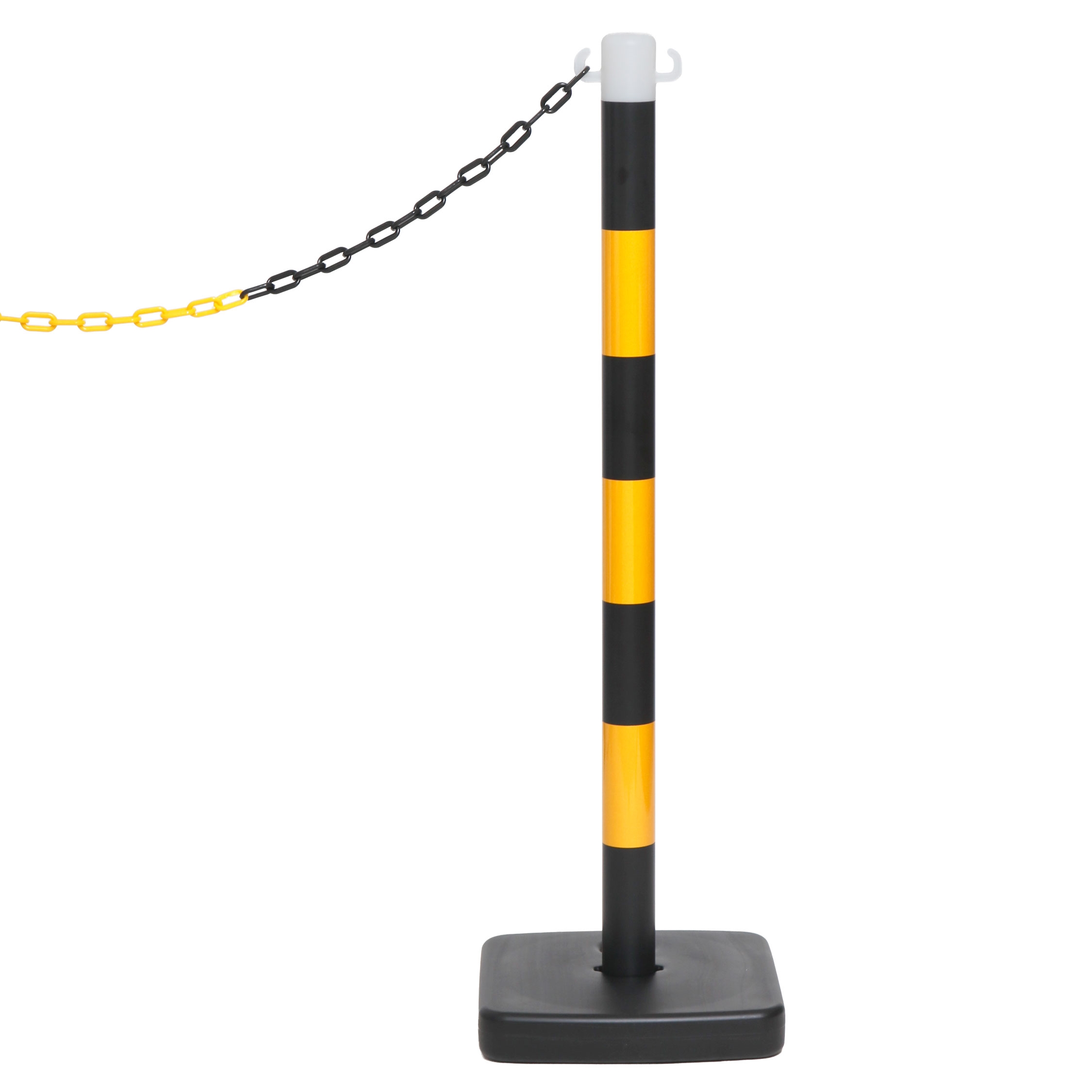 Denne stolpen gir en tydelig og synlig avsperring som raskt kan tilpasses ulike behov. Den svarte og gule fargekombinasjonen gir høy oppmerksomhet, og den fyllbare foten sørger for sikker stabilitet. En praktisk og holdbar løsning for utendørs bruk der fleksibilitet og trygghet er viktig.