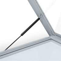 Våres premium uthengsskap er topphengslet og montert med gassfjær, som gjør at døren holder sig selv åpen, samtidig som du skifter plakatene / oppslagene.