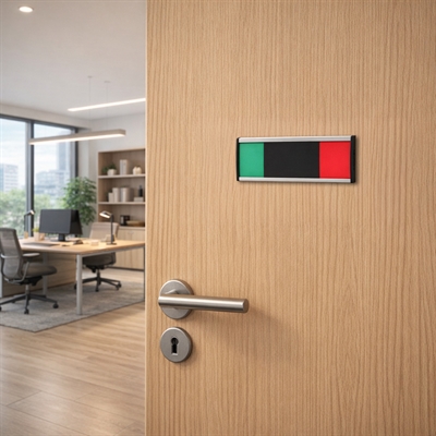 Premium Ledig / Opptatt-skilt er en eksklusiv og diskret løsning for statusmarkering, der man ønsker et rent, universelt og språkuavhengig uttrykk.