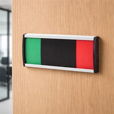 Premium Ledig / Opptatt-skilt er en eksklusiv og diskret løsning for statusmarkering, der man ønsker et rent, universelt og språkuavhengig uttrykk.