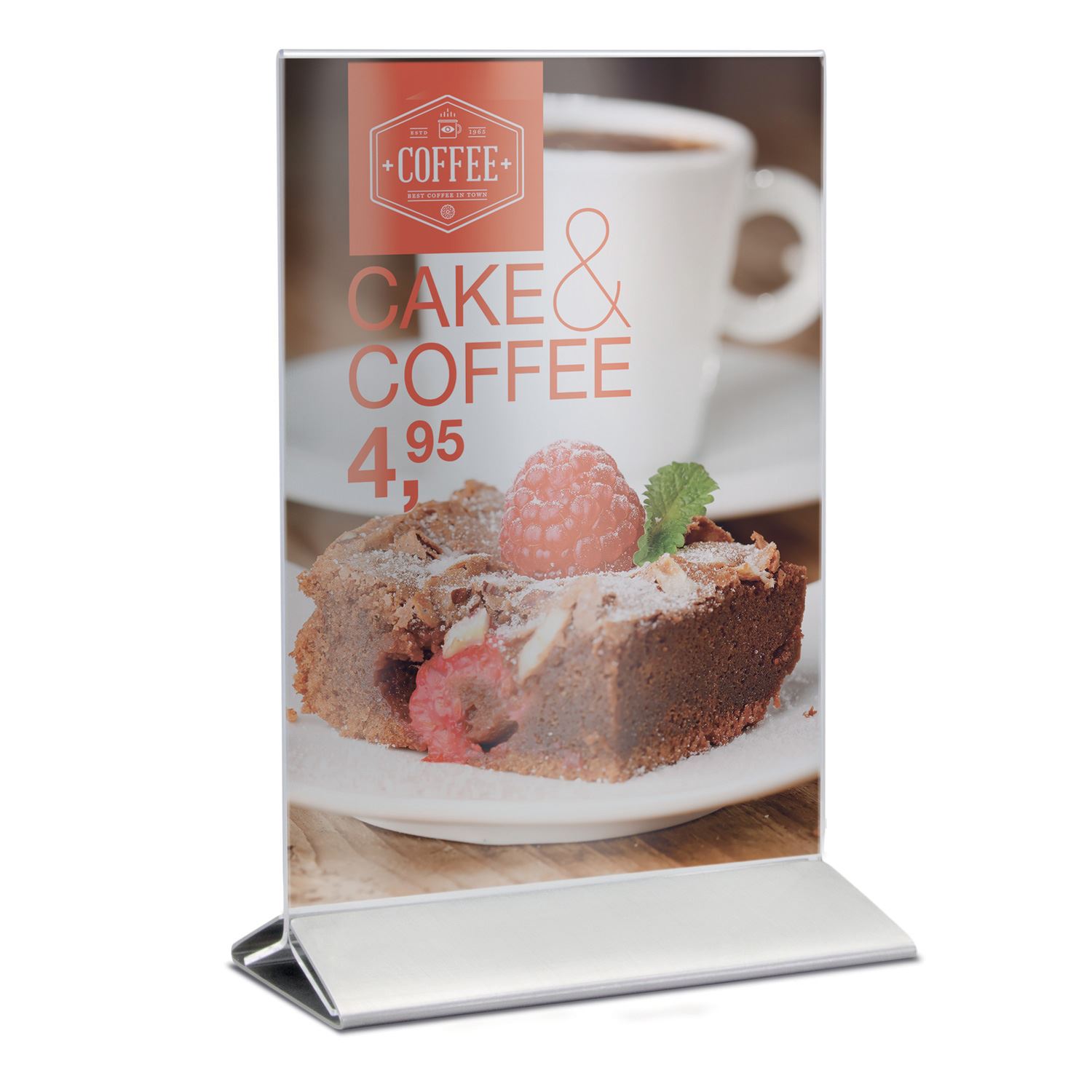 Perfekt til bruk som menyholder eller info- / prisholdere i butikker, restauranter, showrooms, mm.