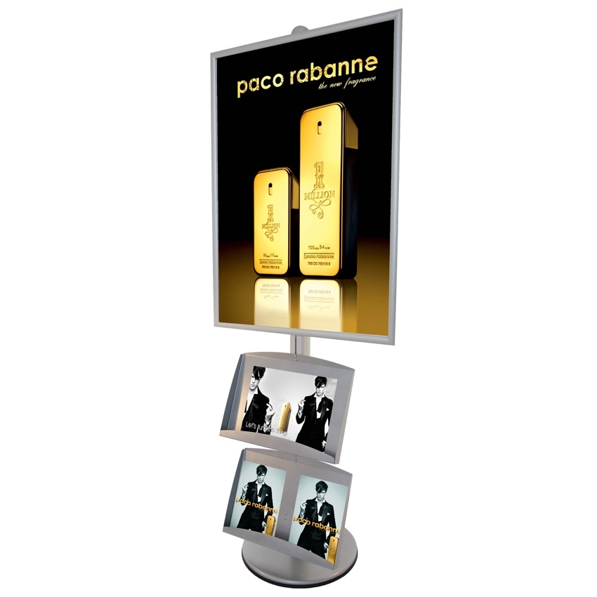 Denne ProStand leveres med en klikkramme og en 2 stål brosjyreholder til i alt 4 x A4 eller 2 x A3.