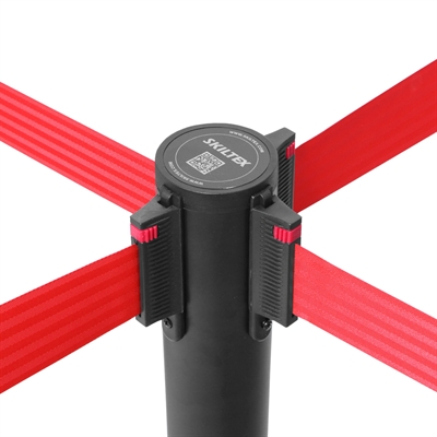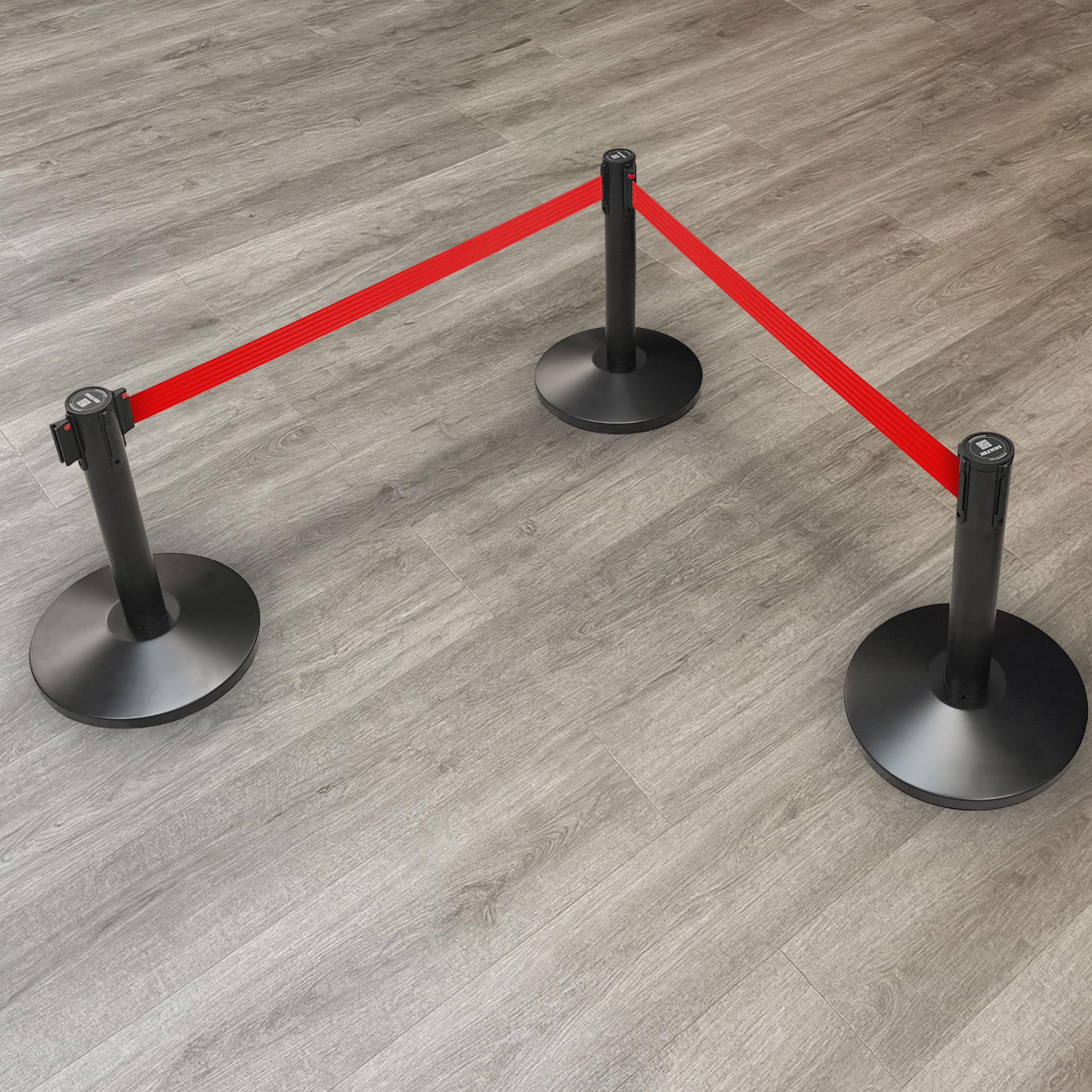 QueueMax Mini Svart Avsperringsstolpe med rødt bånd