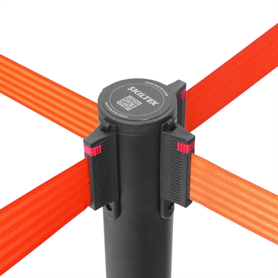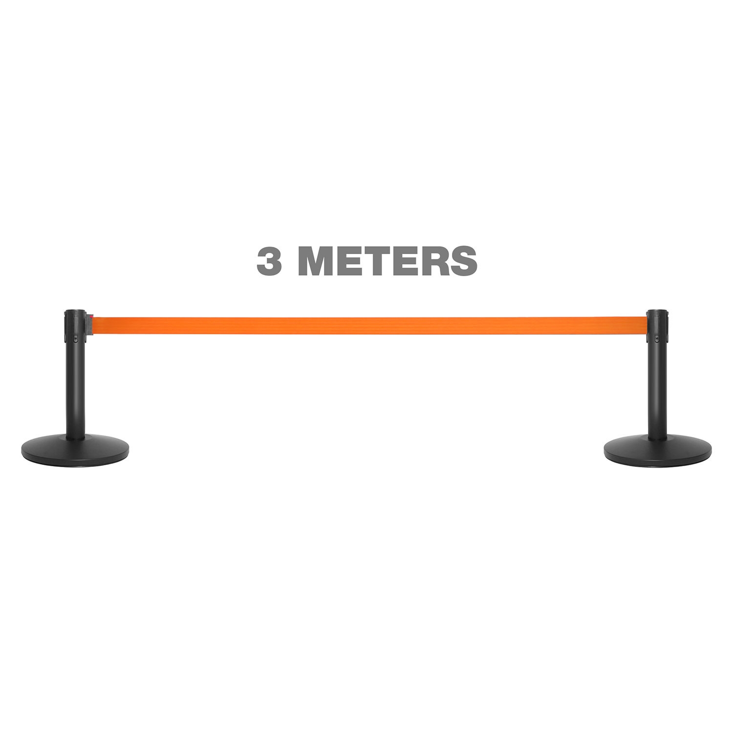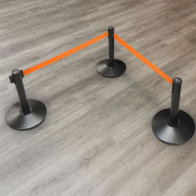 QueueMax Mini Svart Avsperringsstolpe med oransje bånd