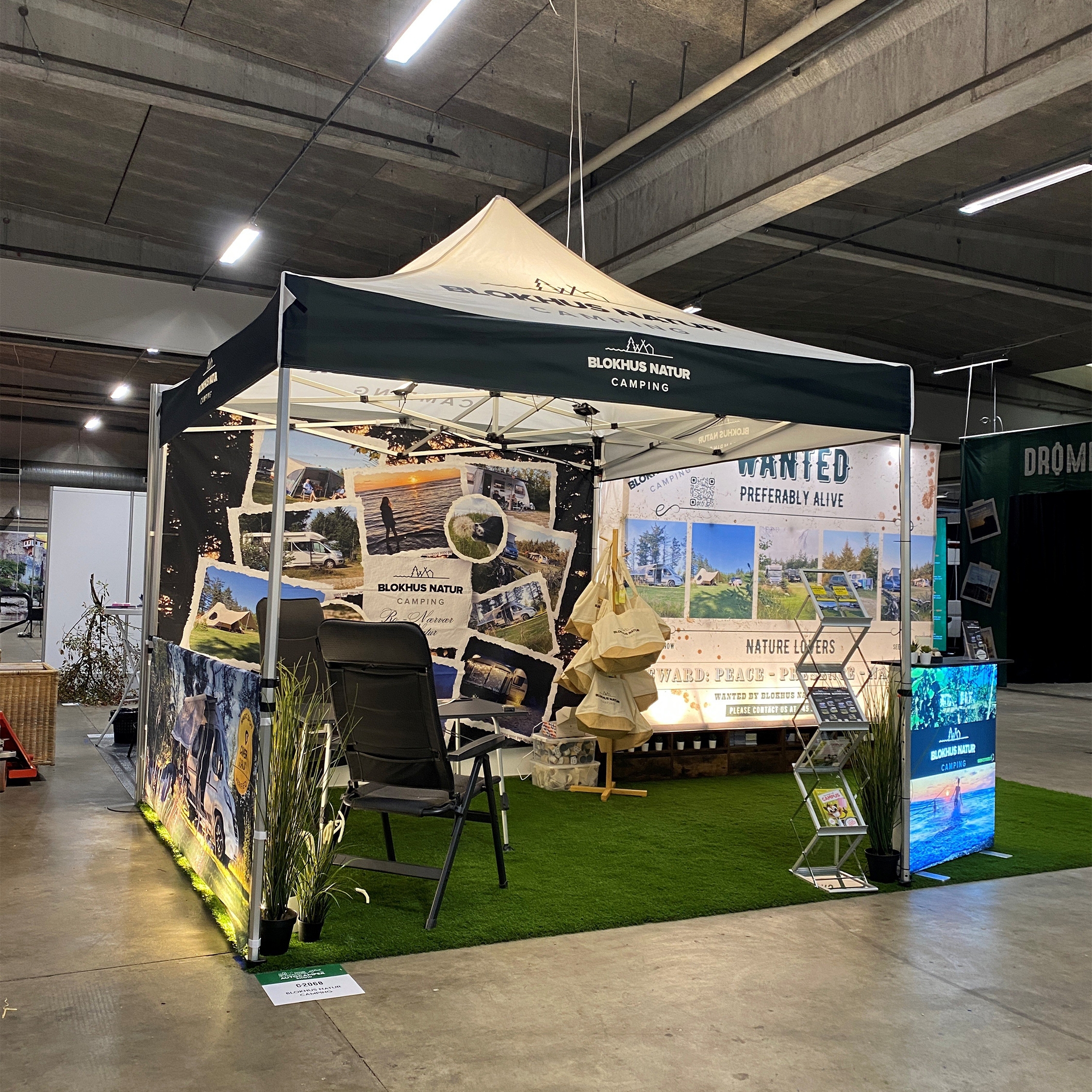 • Leveres med fullfarget tak og 1 sidevegg med eget trykk på utsiden