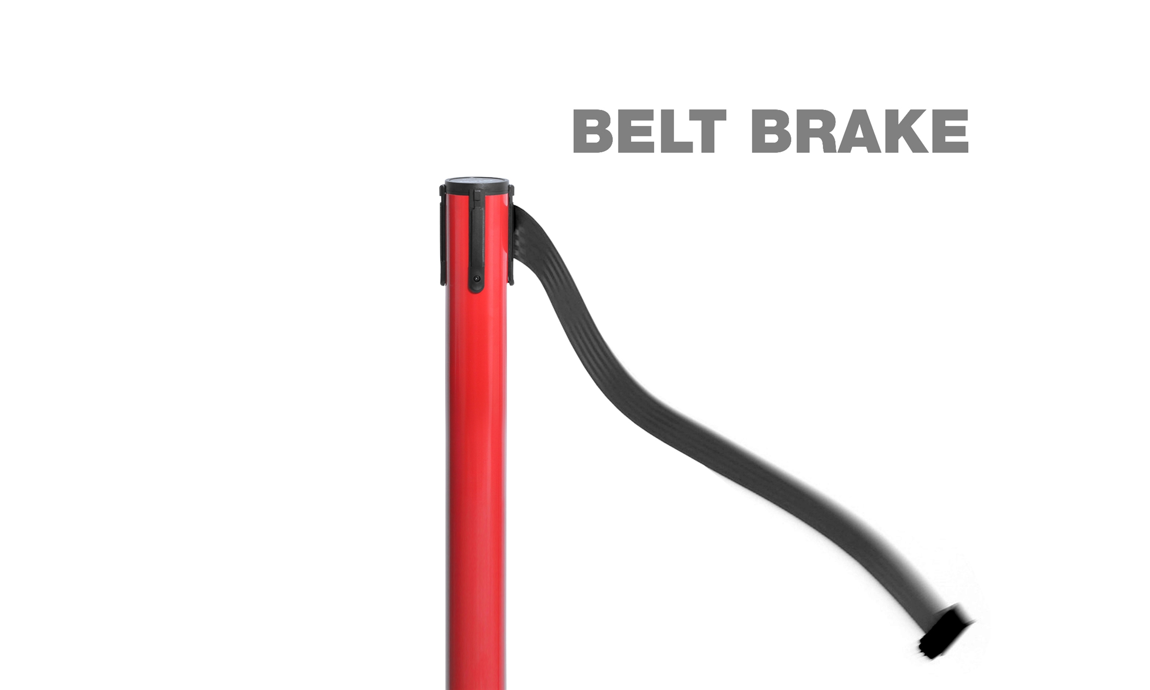 Disse kø-ledere har et avansert sikkerhetsbremsesystem – Dette betyr at hvis båndet blir tapt, så faller det ned på gulvet og trekker sig langsomt tilbake inn i spolen.