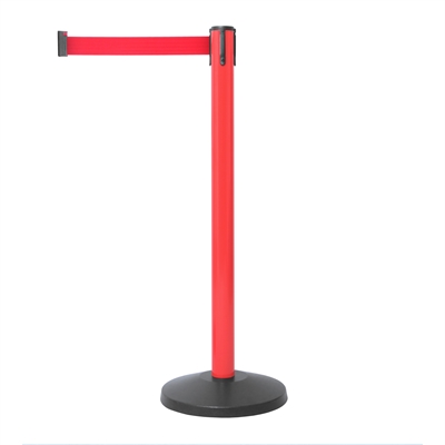 Røde SafetyMaster avsperringsstolper er produsert i galvanisert stål med en tung og stabil betongfyllt fot med gulv beskyttelse.