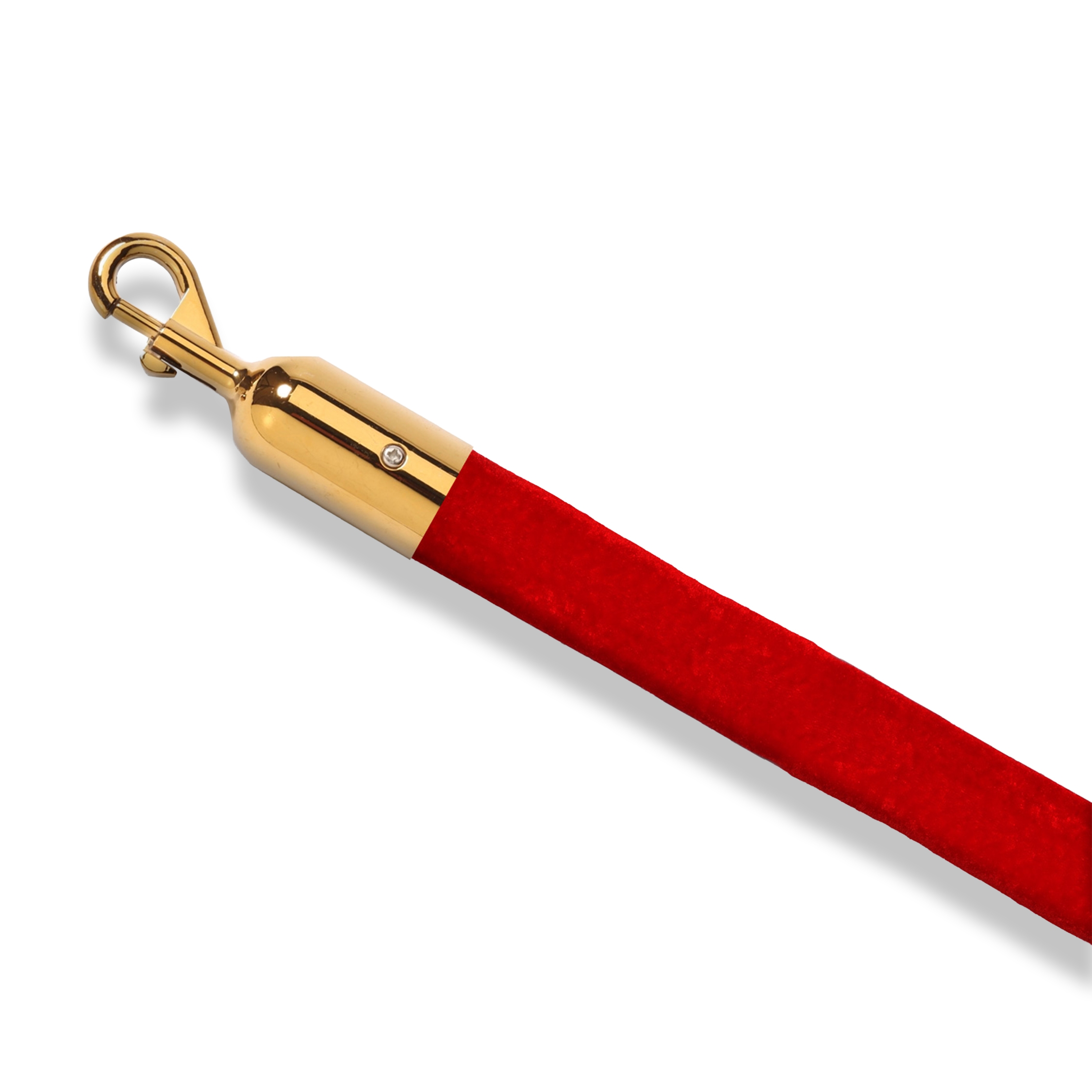 Smart og eksklusiv VIP rødfarget velour tau med gullfarget klikklås. Passer bl.a. til våres Gull RopePro avsperringsstolper. Lengde: 180cm