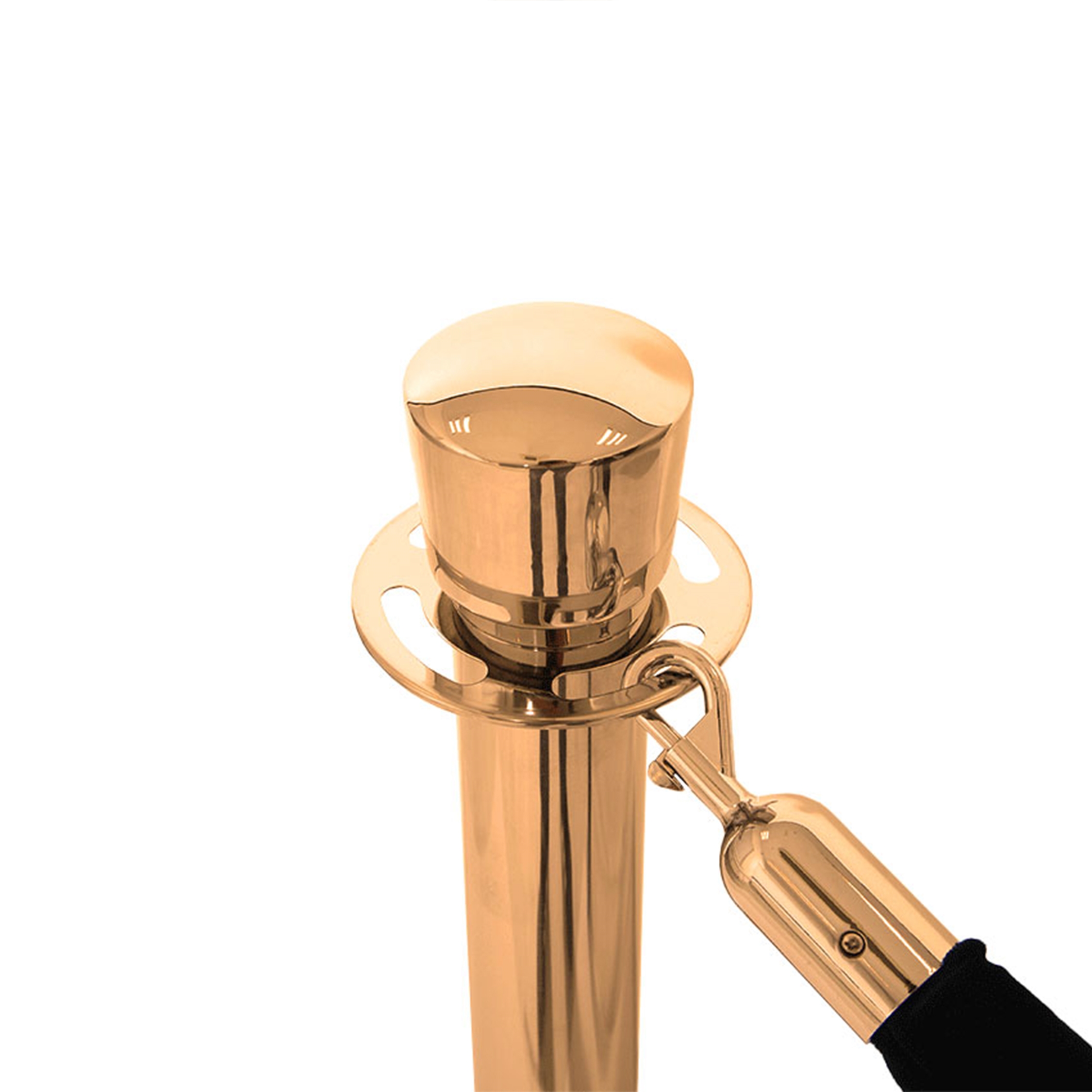 RopePro avsperringsstolper i gull / polert messing farge med krone-topp.