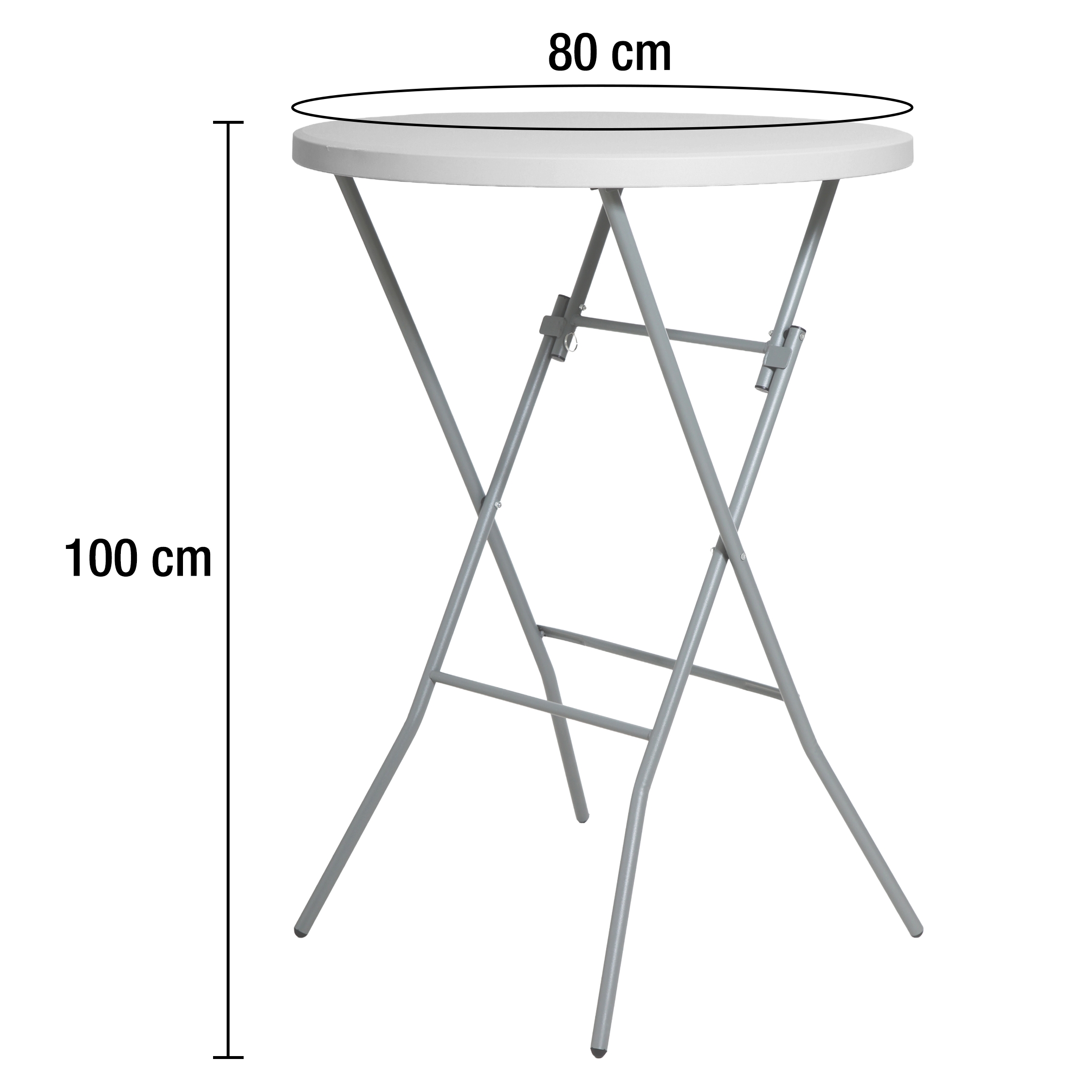 Med en bordplate på 80 cm i diameter og en høyde på 110 cm får du et stabilt og funksjonelt bord som passer til enhver anledning.