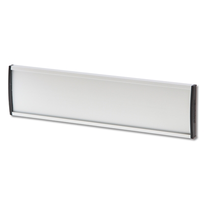 Dette elegante og praktiske dør- og veggskiltet er ideelt for kontorer, hoteller, klinikker, møterom og andre profesjonelle miljøer. Aluminiumsprofilen med sorte plastender gir skiltet et moderne og profesjonelt uttrykk som passer inn i de fleste interiører.