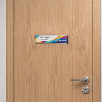 Skiltet er utviklet for å gjøre det enkelt å oppdatere navn, avdelinger eller rominformasjon når behovet oppstår. Du bytter enkelt ut utskriften i skiltet.
