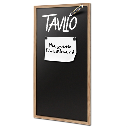 Tavlen kan skrives på med vanlig kritt eller krittmarkører, og du kan bruke vanlige magneter for å henge opp notater og lignende.