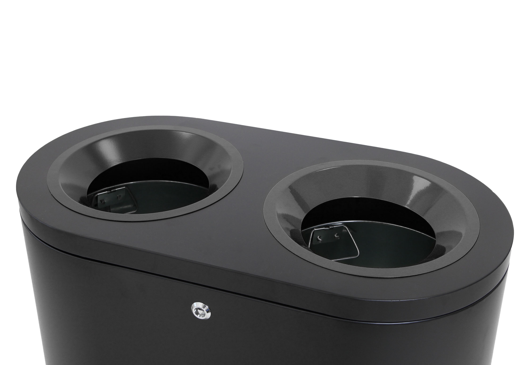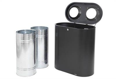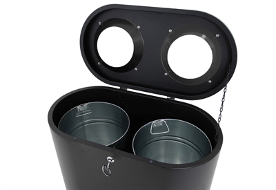 Twin Station er en praktisk avfallssorteringsbeholder med to separate beholdere på 50 liter, som gjør det enkelt å sortere ulike typer avfall. Stasjonen er laget av motstandsdyktige og holdbare materialer og er egnet for innendørs og tildekket utendørs bruk. De innvendige beholderne er laget av galvanisert stål, som gir god beskyttelse og lang levetid. Den svarte ytre finishen gjør at beholderen passer inn i mange forskjellige miljøer. Fronten åpnes med den medfølgende nøkkelen slik at beholderne raskt kan tas ut og tømmes.