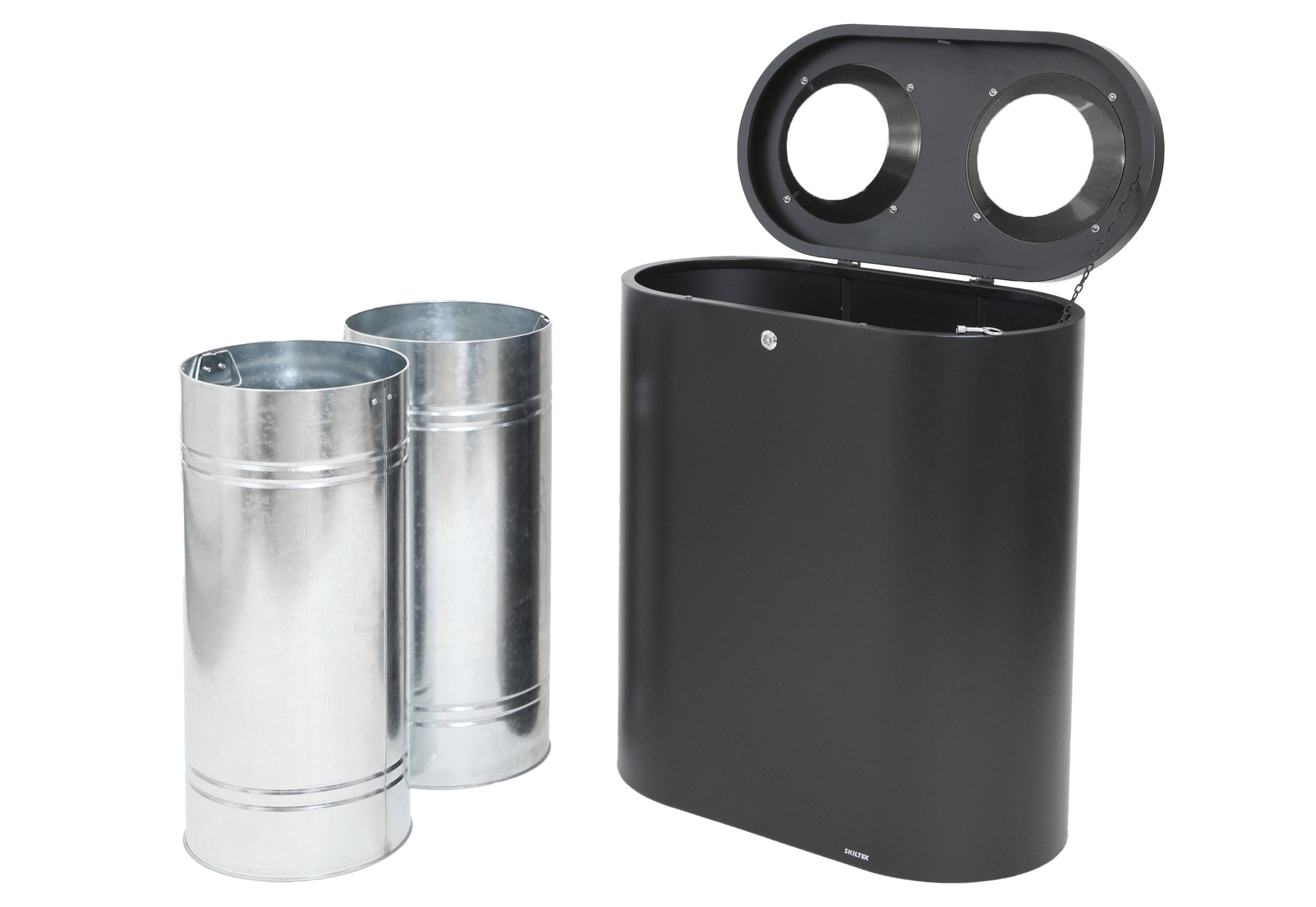 SKILTEX Twin station til Avfallssortering - 2x50L - Svart