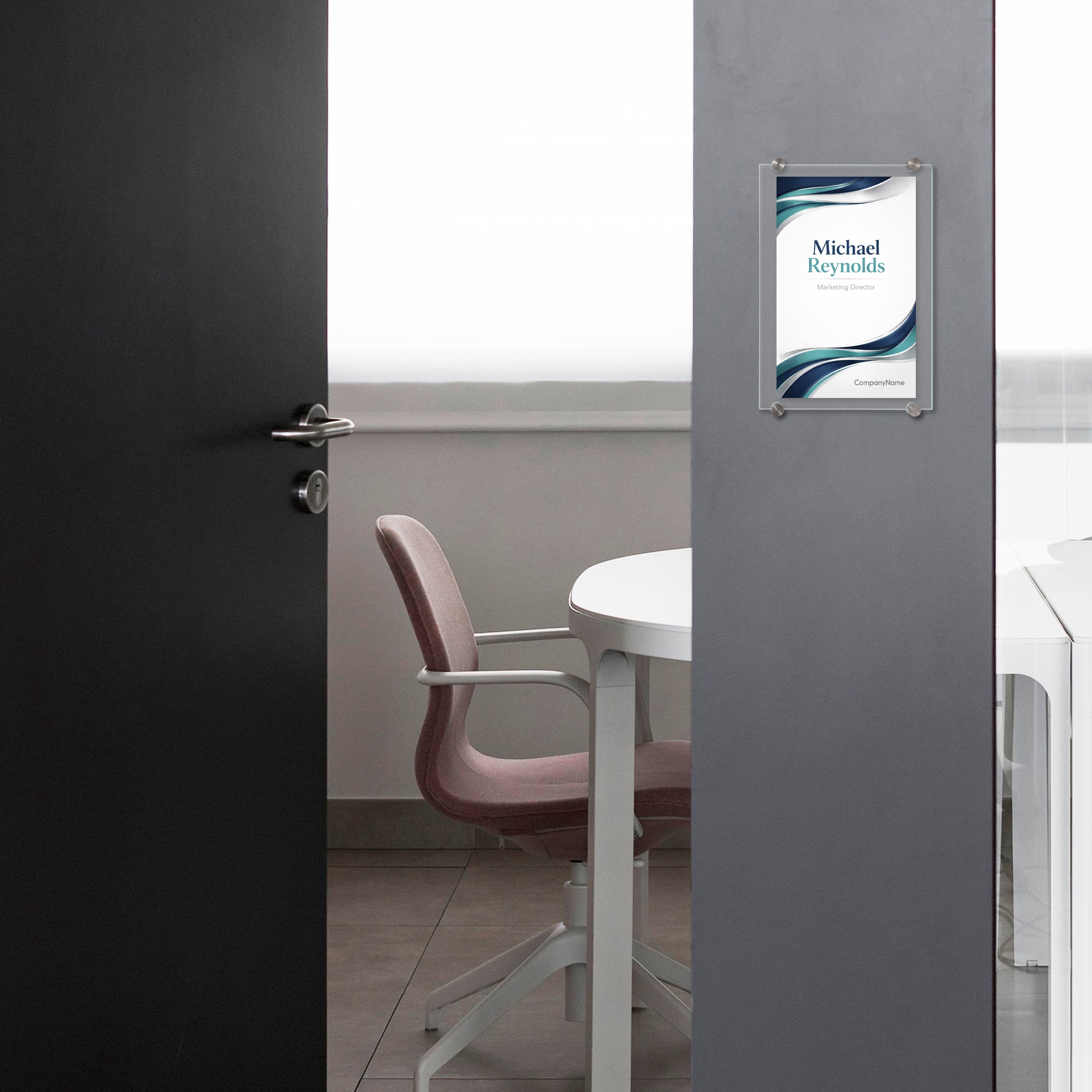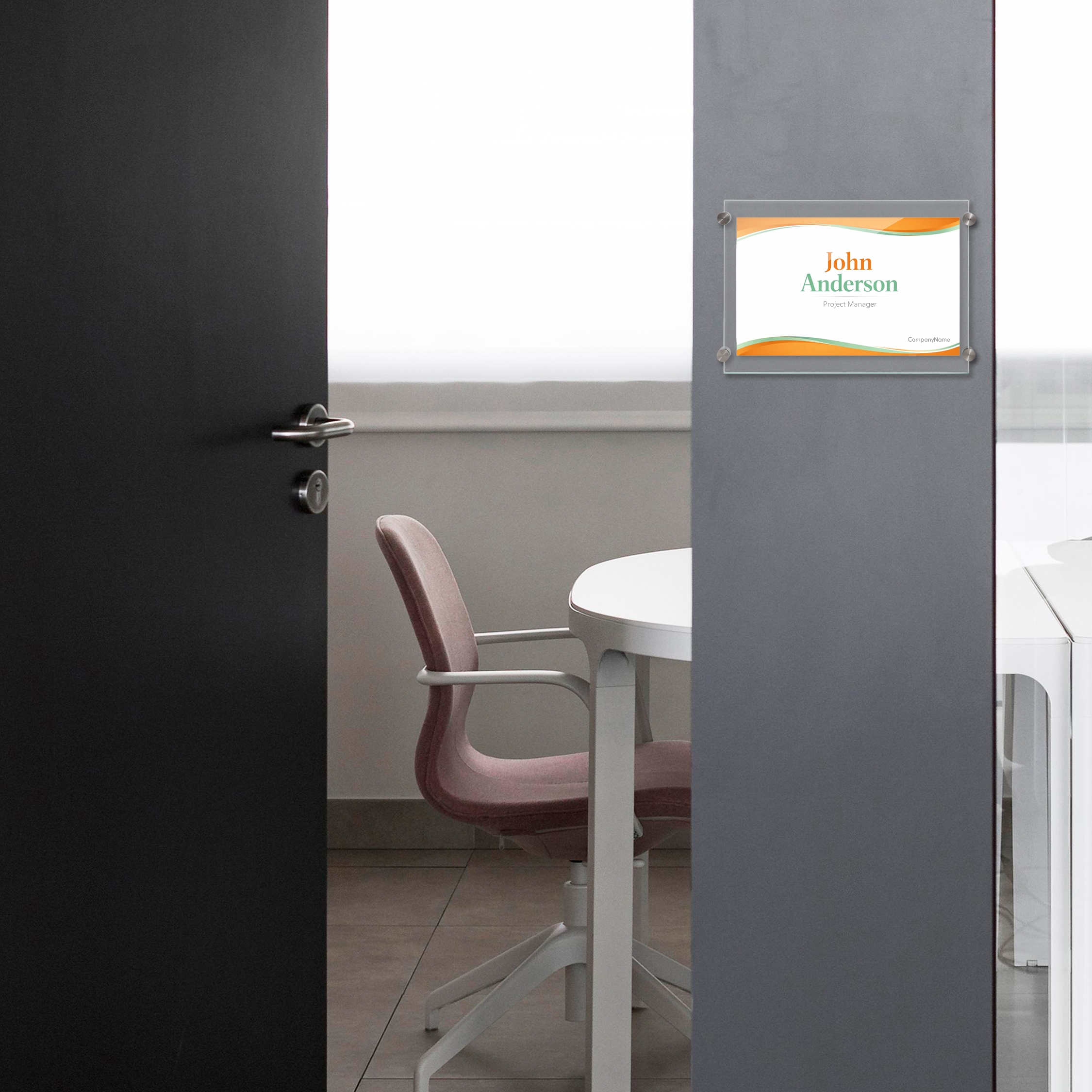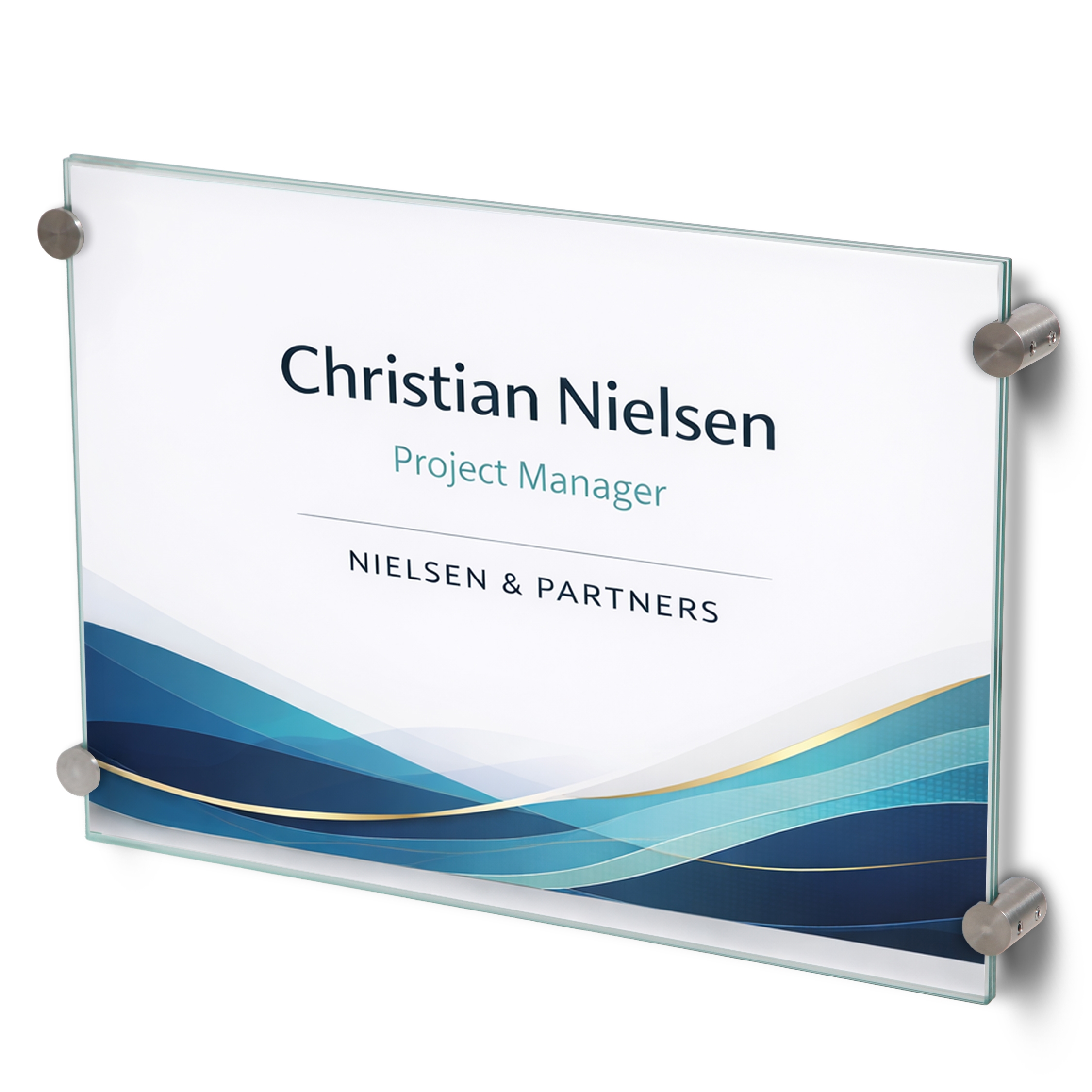 Et stilrent glasskilt som passer perfekt til kontorer, møterom, klinikker og andre profesjonelle omgivelser.