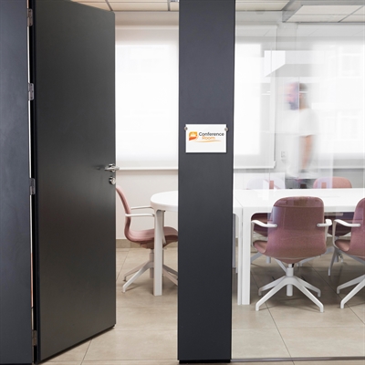 Et stilrent glasskilt som passer perfekt til kontorer, møterom, klinikker og andre profesjonelle omgivelser.