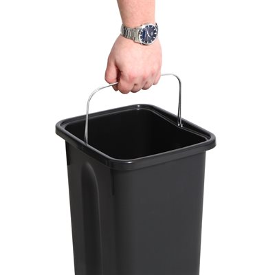 Dette sorteringssystem i svart, kraftig, 100% gjenbrukt plastik med en kapasitet på 3x20l og med lokk i blå, rød og grønn.