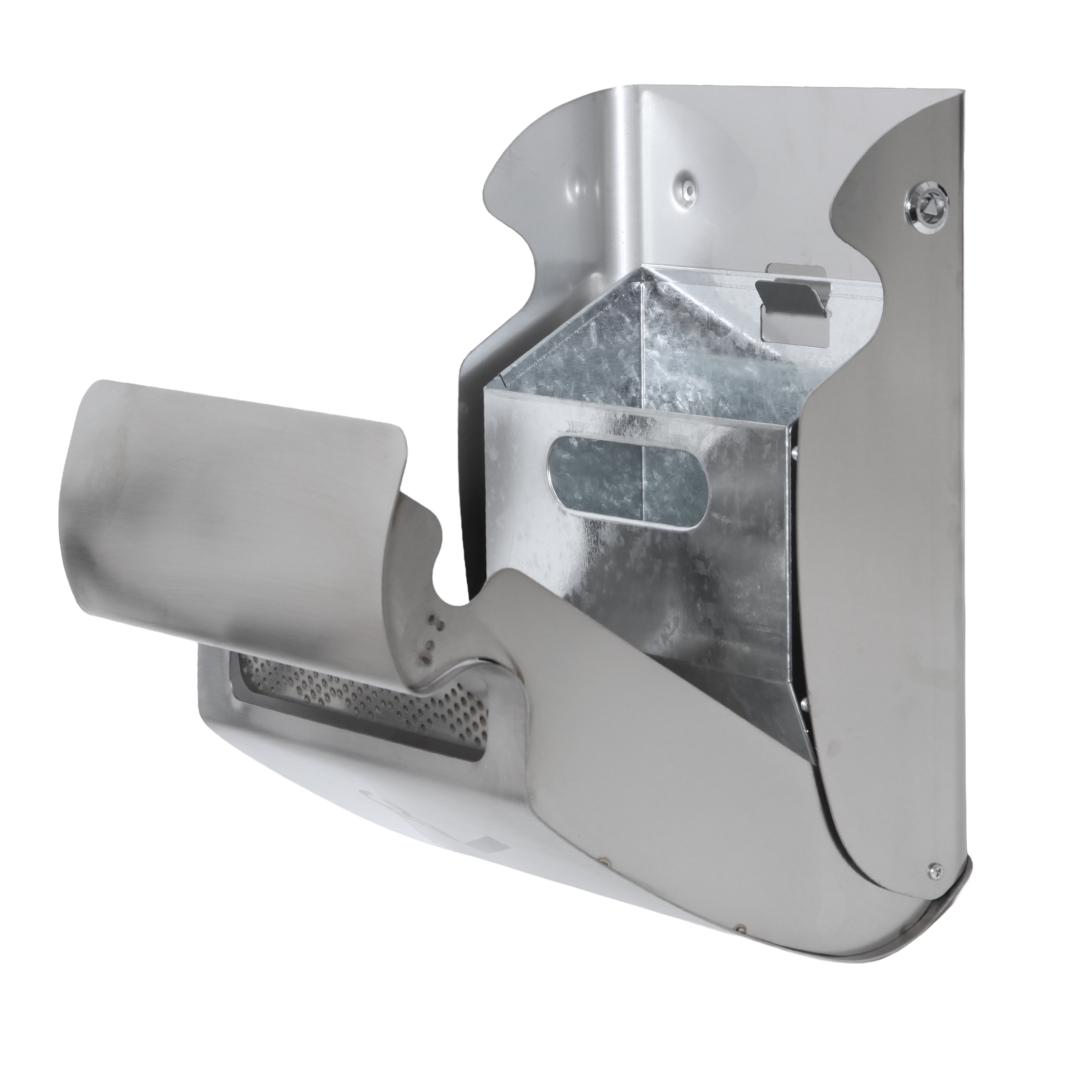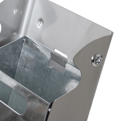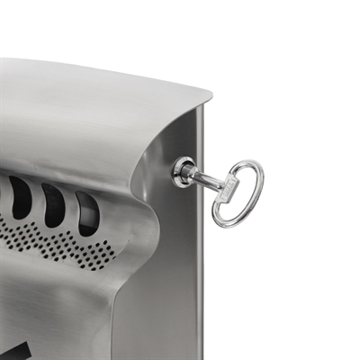 Askebegeren er enkel og rask at tømme; fronten åpnes på siden med den inklluderte nøkkeln og så tas den innre galvaniserte stålbøtten lett ut.