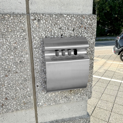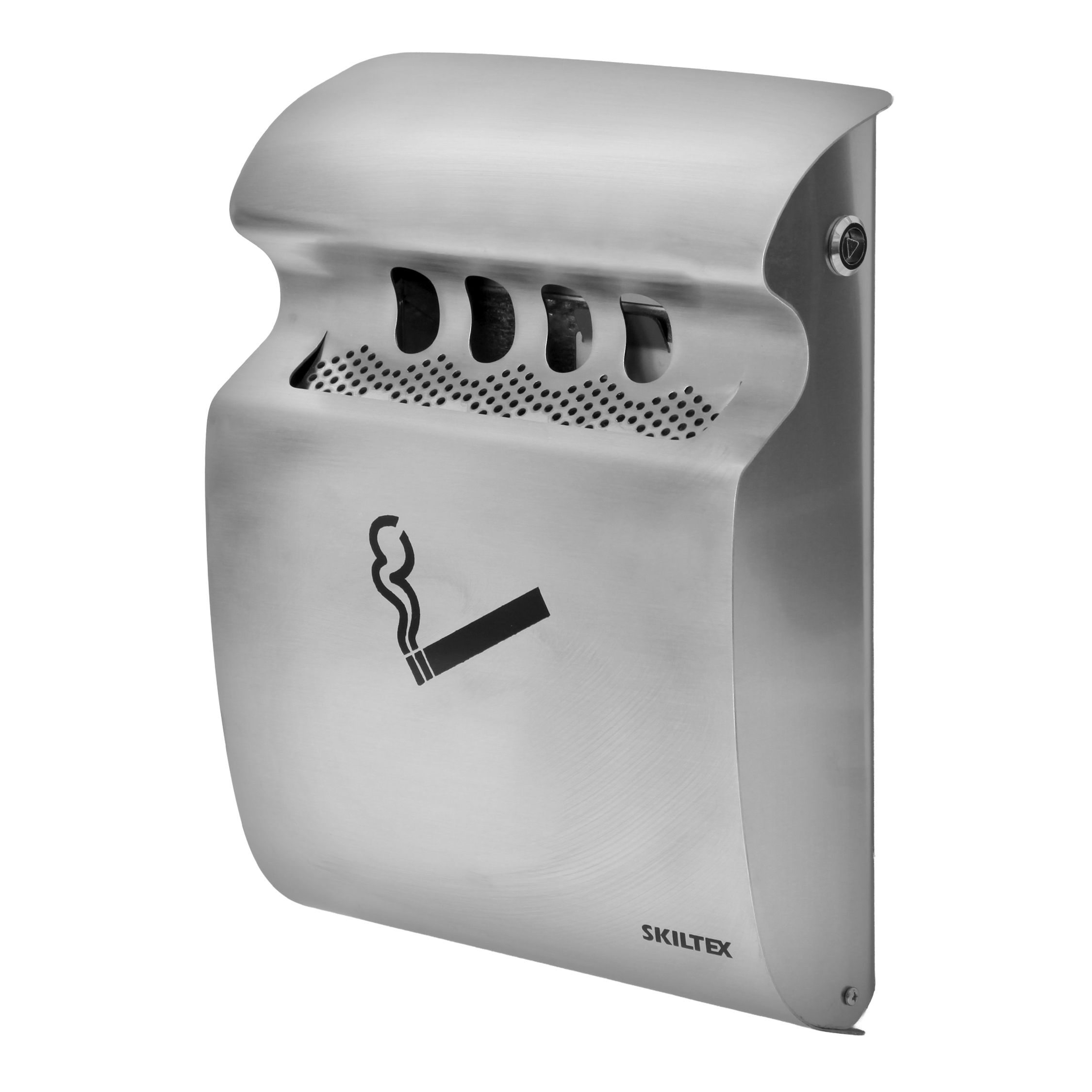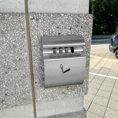 Fronten kan låses på siden og er utstyrt med 4 huller og nett for enkel tømming av sigarettsneiper.