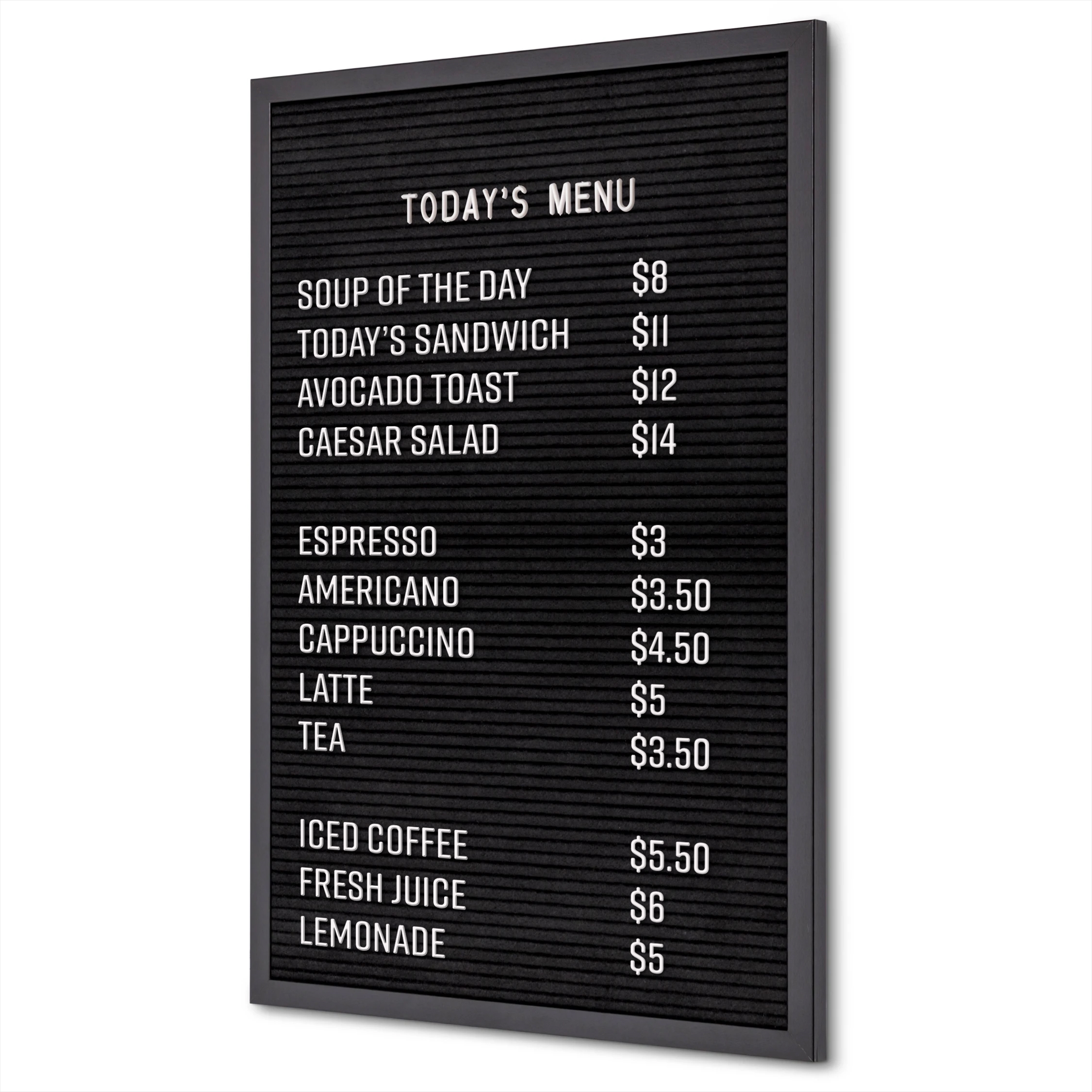 En perfekt tavle for korte beskjeder på bar, kafé, kontoret eller til og med hjemme. Legg for eksempel til menyen din, en hilsen, melding eller sitat.