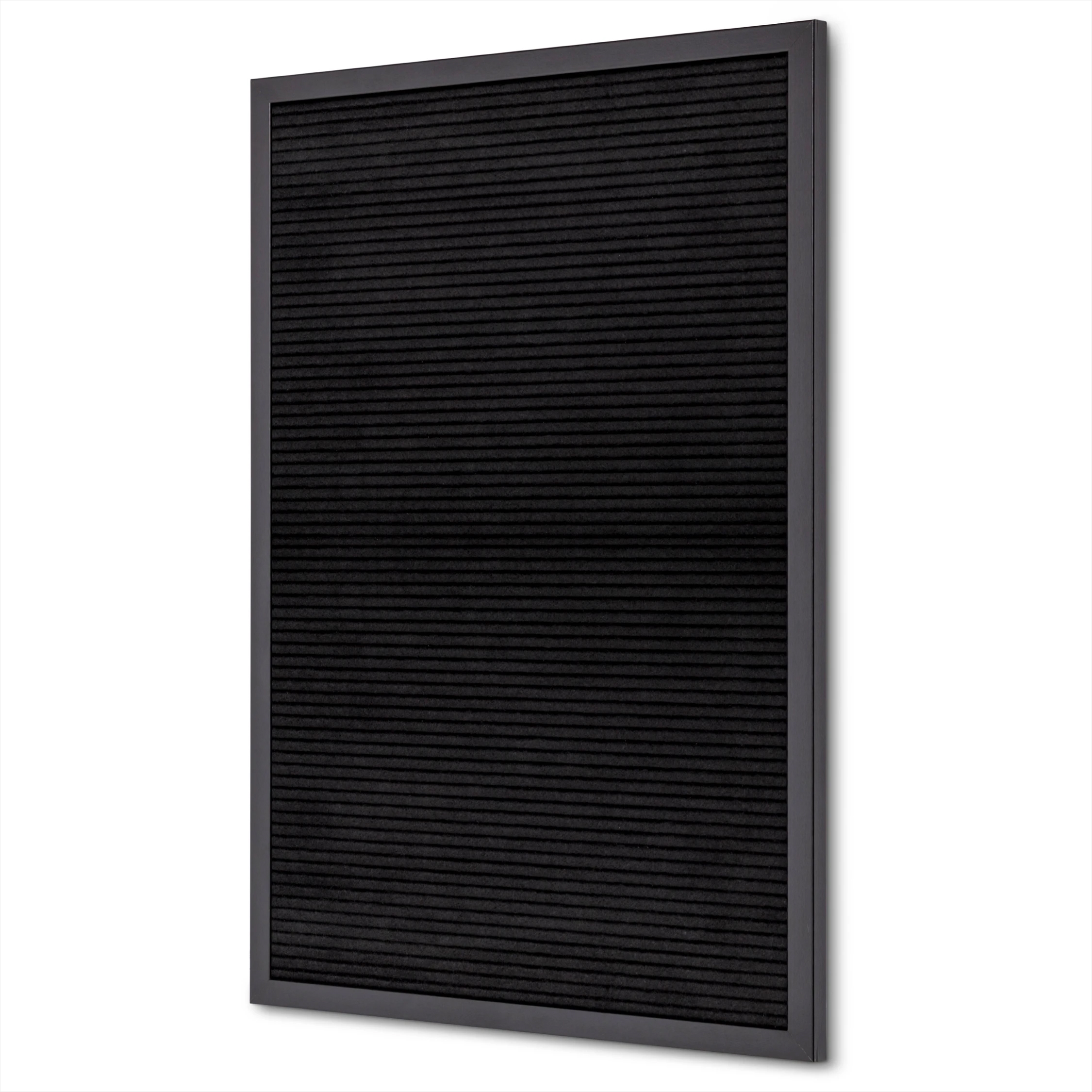 Vår svarte bokstavtavle er en vintage og stilfull design-tavle med en svart ramme og svart filt-overflate. Tavlen leveres med 330 hvite plastbokstaver og 120 tall. Bokstavene er enkle å montere og justere, noe som gjør det veldig enkelt å oppdatere. Den spesielle overflaten holder de hvite plastbokstavene på plass.
