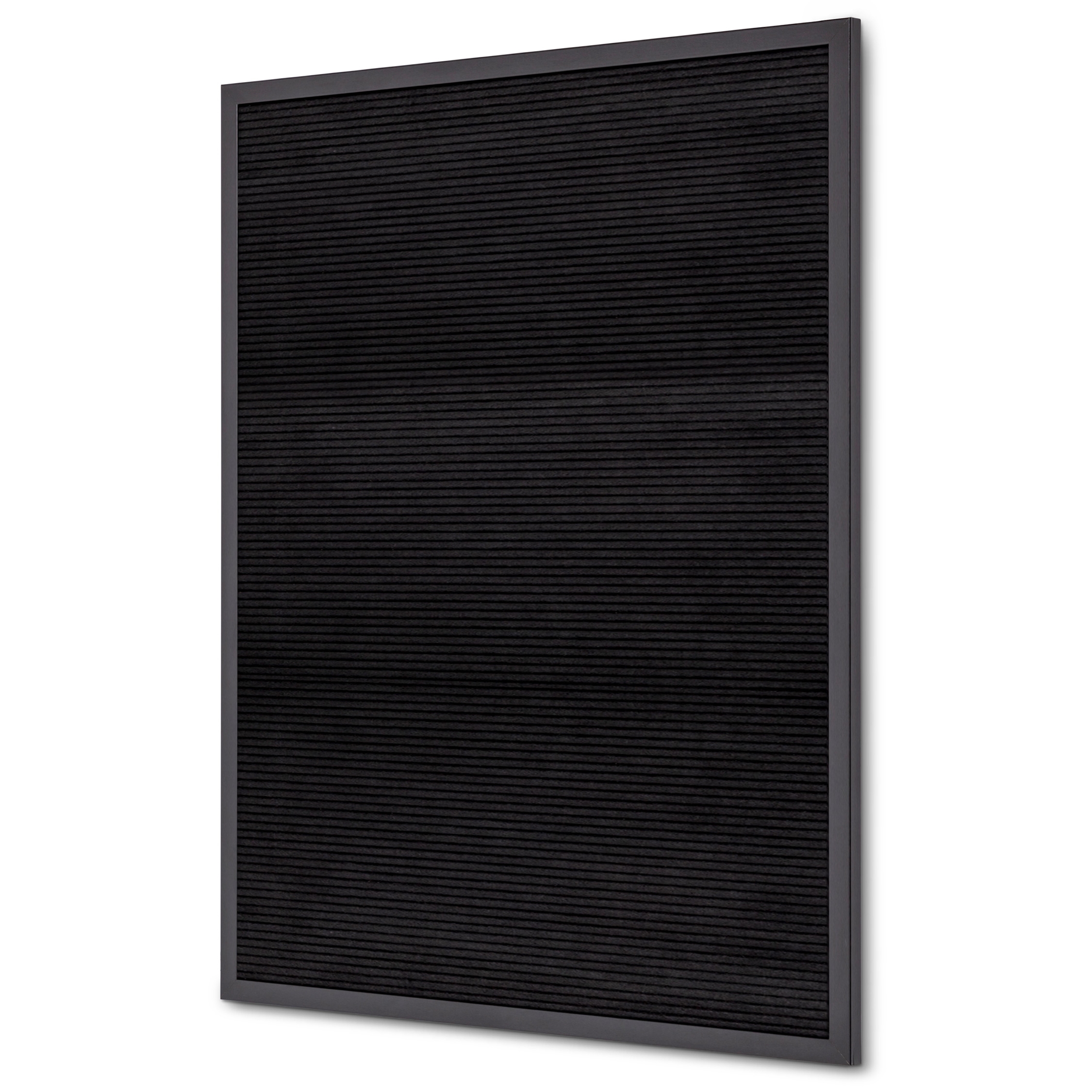 Vår svarte bokstavtavle er en vintage og stilfull design-tavle med en svart ramme og svart filt-overflate. Tavlen leveres med 330 hvite plastbokstaver og 120 tall. Bokstavene er enkle å montere og justere, noe som gjør det veldig enkelt å oppdatere. Den spesielle overflaten holder de hvite plastbokstavene på plass.