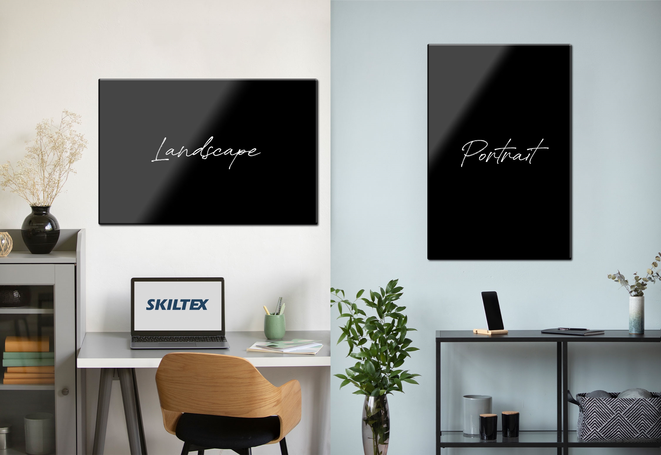 Stilren svart glasstavle laget av herdet glass med magnetisk overflate, for sikker bruk hjemme eller på kontoret. Tavlens tettsittende og diskrete design sørger for at den sitter helt inntil veggen.