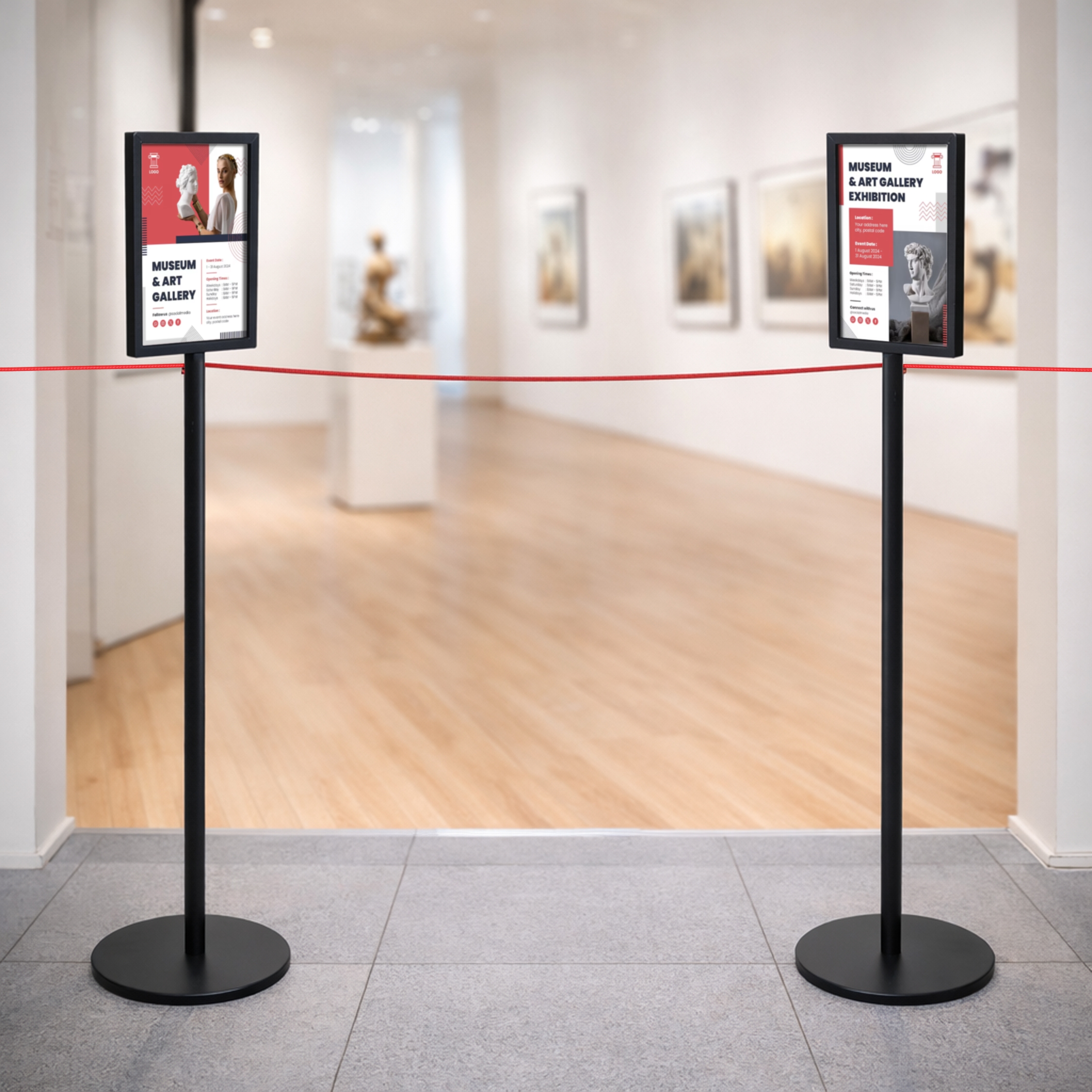 Svart plakatramme til Museo avsperringsstolper - A4